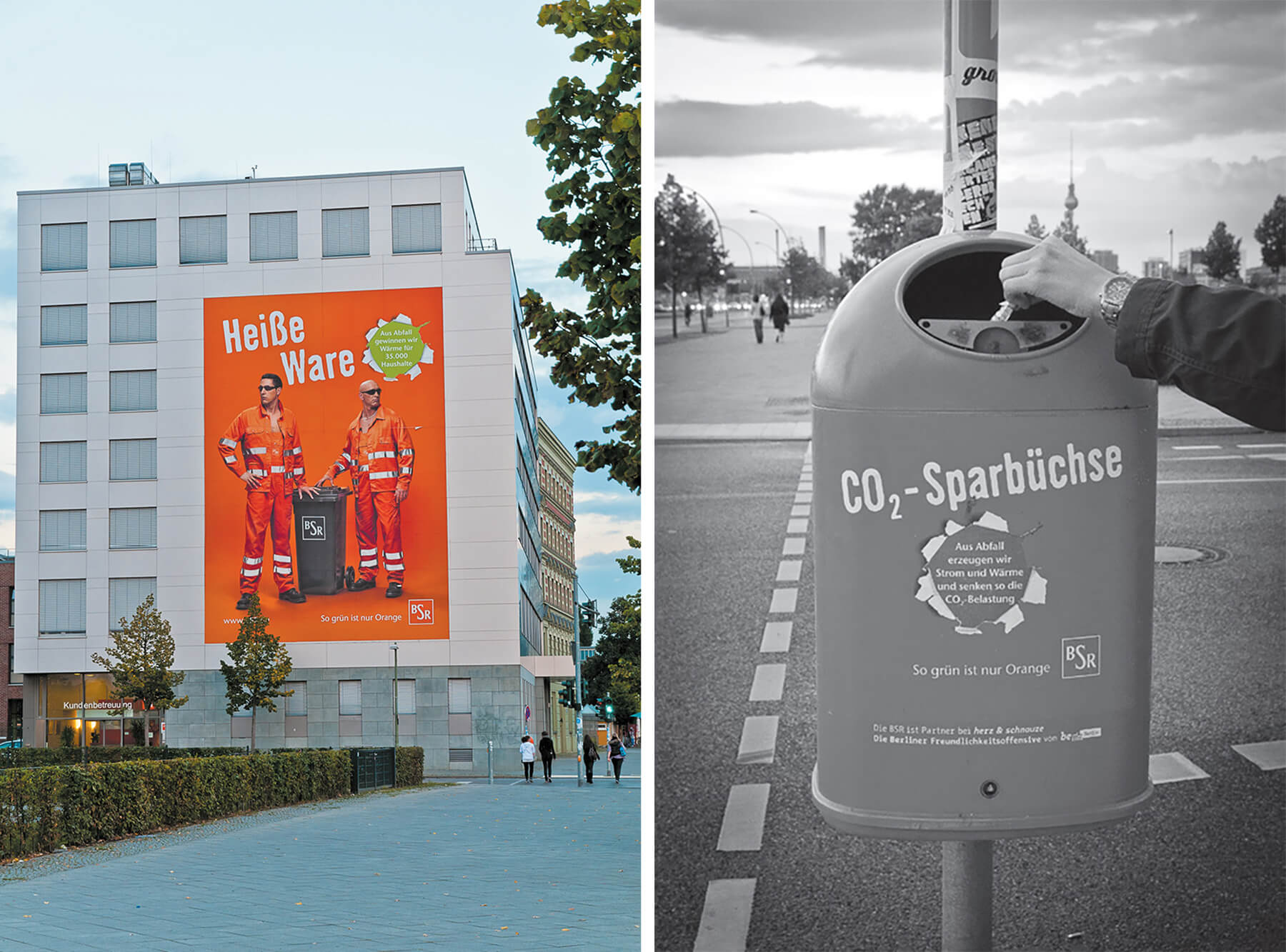 最新的廣告則是訴求環保,強調「柏林城市清潔」焚化垃圾,同時發電,讓垃圾也有綠色價值。