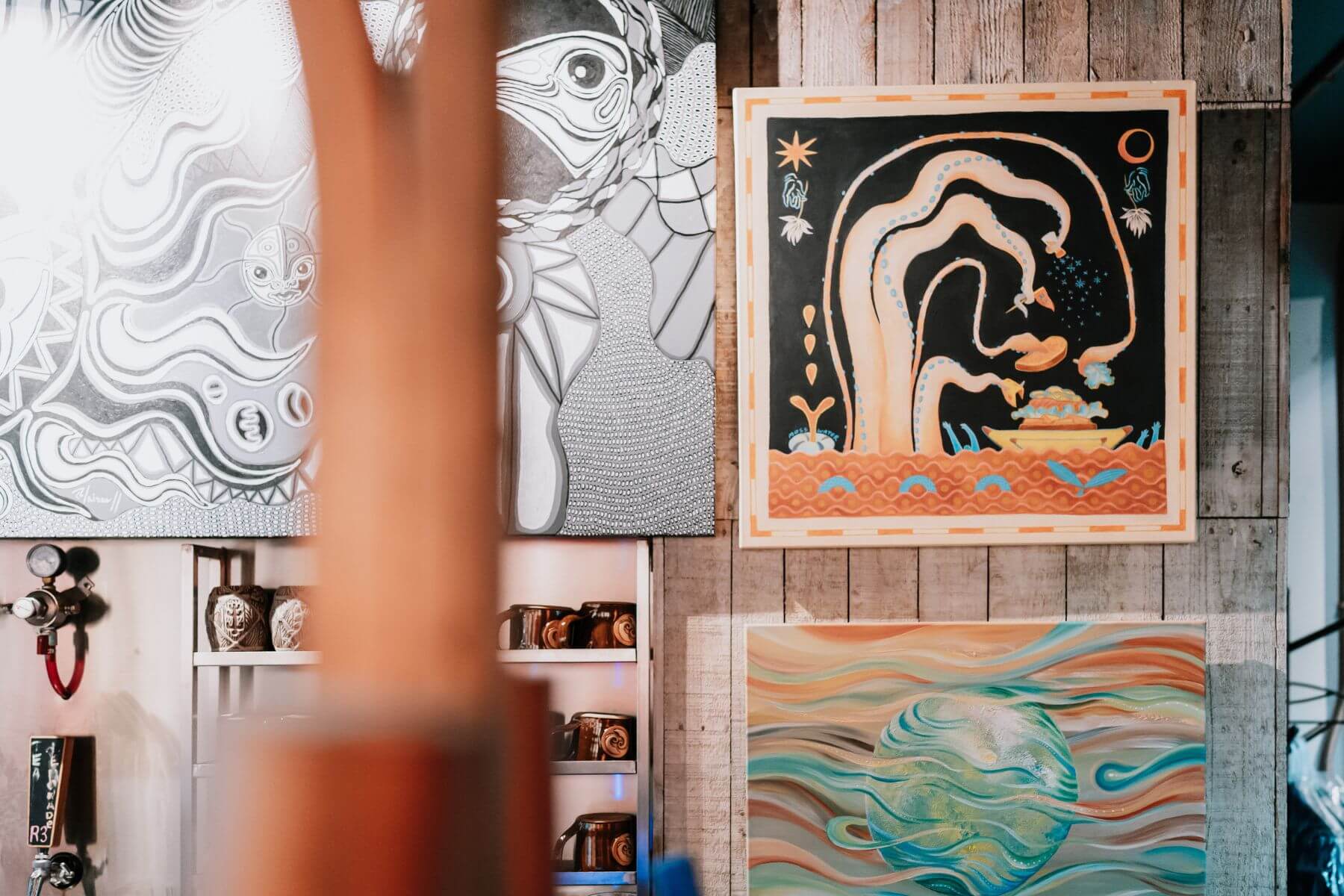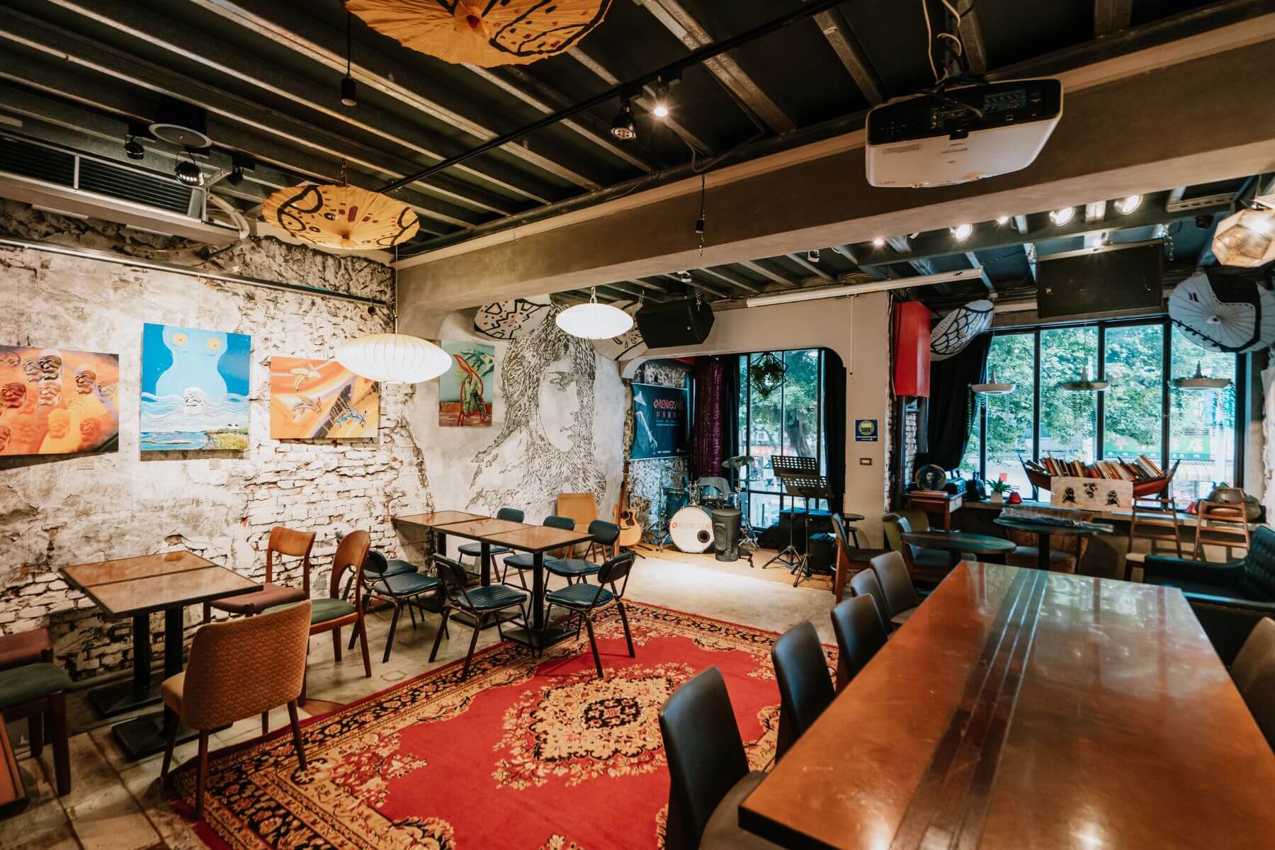 先起身走走去尋覓這座雙層空間裡的藝術分子——比如刻在餐廳牆面上的巨型圖騰,以及懸掛的一幅幅畫作,那些是來自世界各方藝術家留下的創作紀錄;或是豎起耳朵,聆聽二樓Live Band演奏的躍動音符。這些元素為這間尋常餐館述說一個與眾不同的故事。