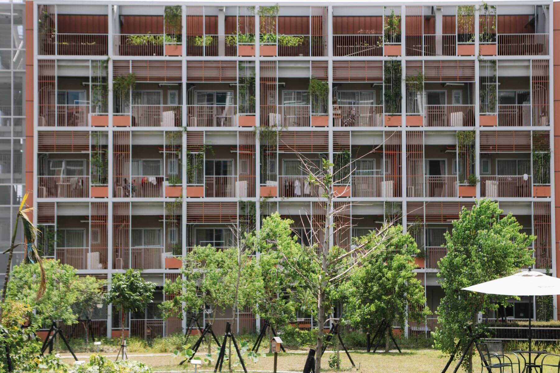 轉頭看向已完工並迎入首批住客的台糖沙崙智慧綠能循環聚落(以下簡稱台糖循環聚落),形塑前所未見的住宅街廓風貌,更是沙崙科學城另一項足以改寫未來建築業的重大綠實驗。