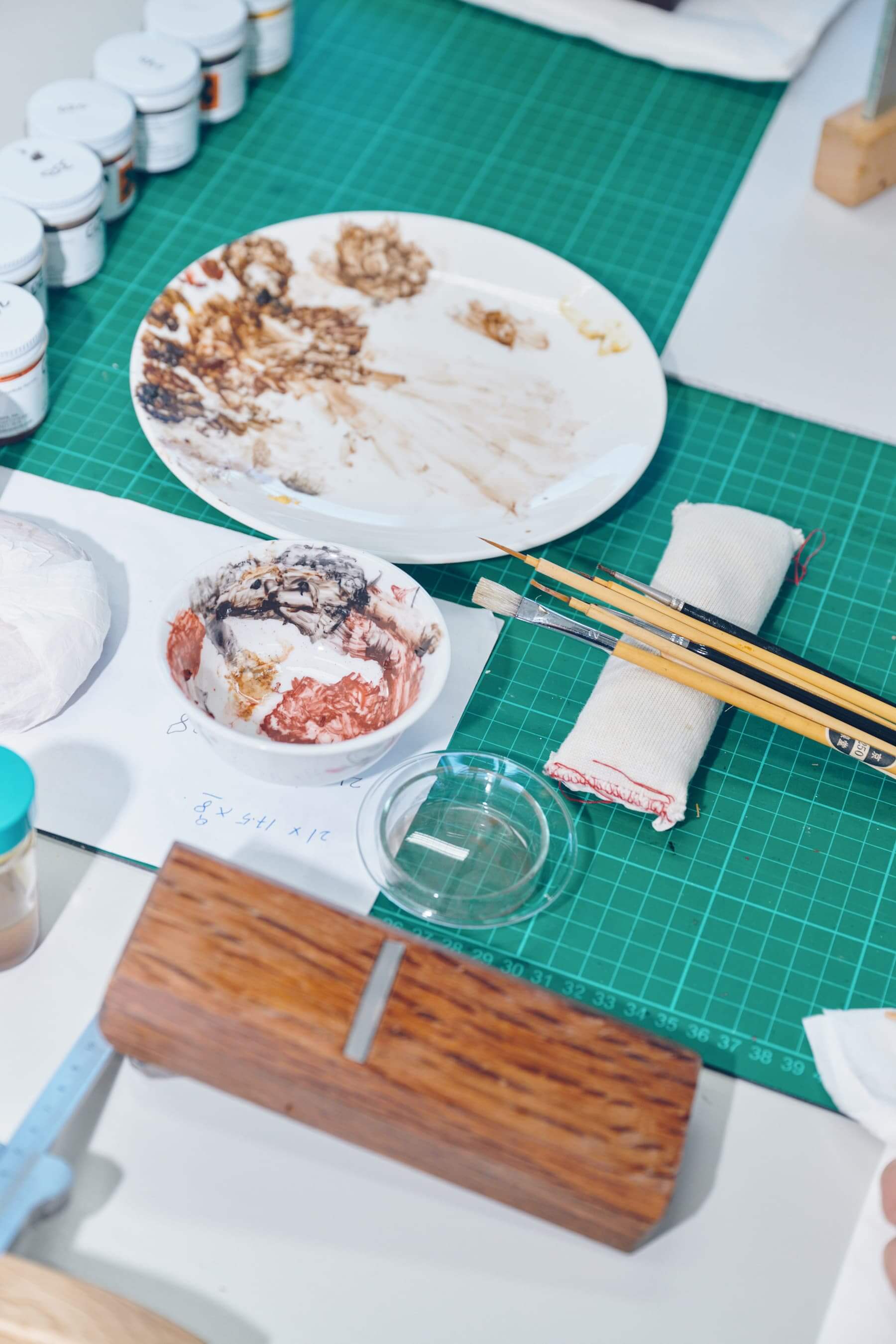 如同廚師調製醬汁,修復師進行書畫裝裱時,也要根據不同物件先自製漿糊,再透過刷子將紙張打糊後,使書畫紙質變得輕薄、濕潤,待乾燥再用手工紙覆蓋,以另一板刷塗勻,讓紙與畫作貼合,每一步驟如履薄冰,只要漿糊品質不對,即會造成書畫受損。更重要的是,漿糊要能讓裱件重新裝裱,在未來被揭裱時,反推之前的裝裱工序,讓書畫得以成功修復。