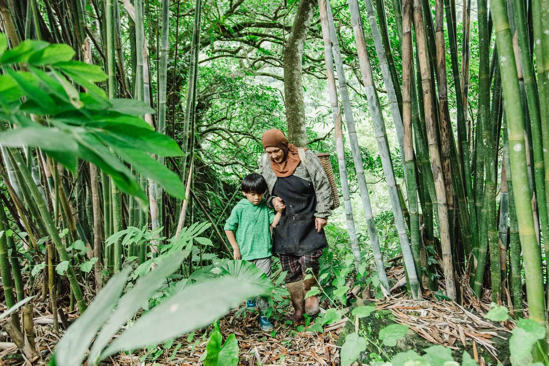 Rngrang的小姪子Loling Sayung(薩一帥)也坐在車上,今年五歲的他喜歡黏在奶奶Heydi身邊,對於山林中的每件事物都興趣盎然,會默默觀察獵人Heydi的一舉一動,小小年紀就能穩穩地拿著鐮刀,「我現在就是期待他囉,他會默默看著,學習一切。」Heydi笑起來,眼睛也笑得彎彎的。
