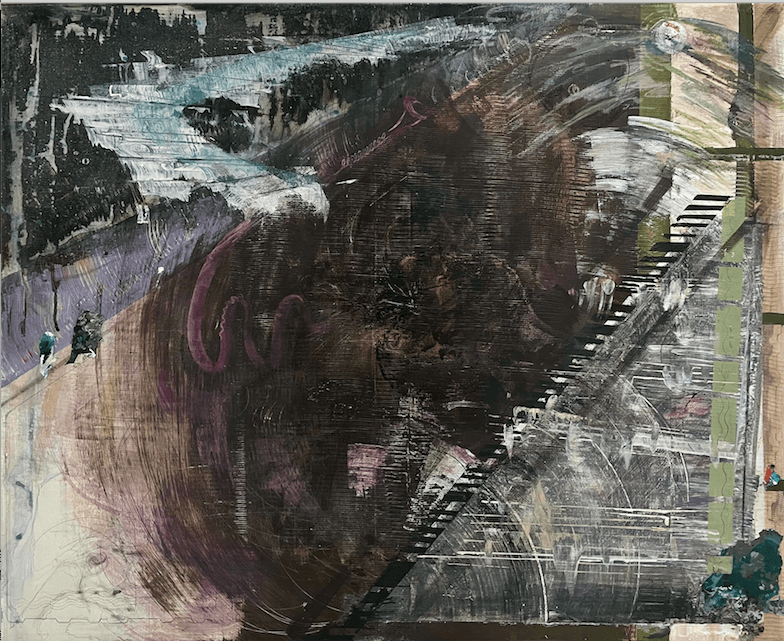而在他其後的以色列藝術家Tom Cohen,直接以一曲三分多鐘的交響樂曲創作為回應,在短短24小時內能夠完成如此創作,也讓接棒的台灣藝術家、仍在大學美術系就讀中的王思婷感到相當驚喜,並且毫不猶疑地以她擅長的平面繪畫相呼應,將樂曲中的弦樂以筆觸表現,也將整部作品的深度以作品中的中心漩渦作為隱喻。