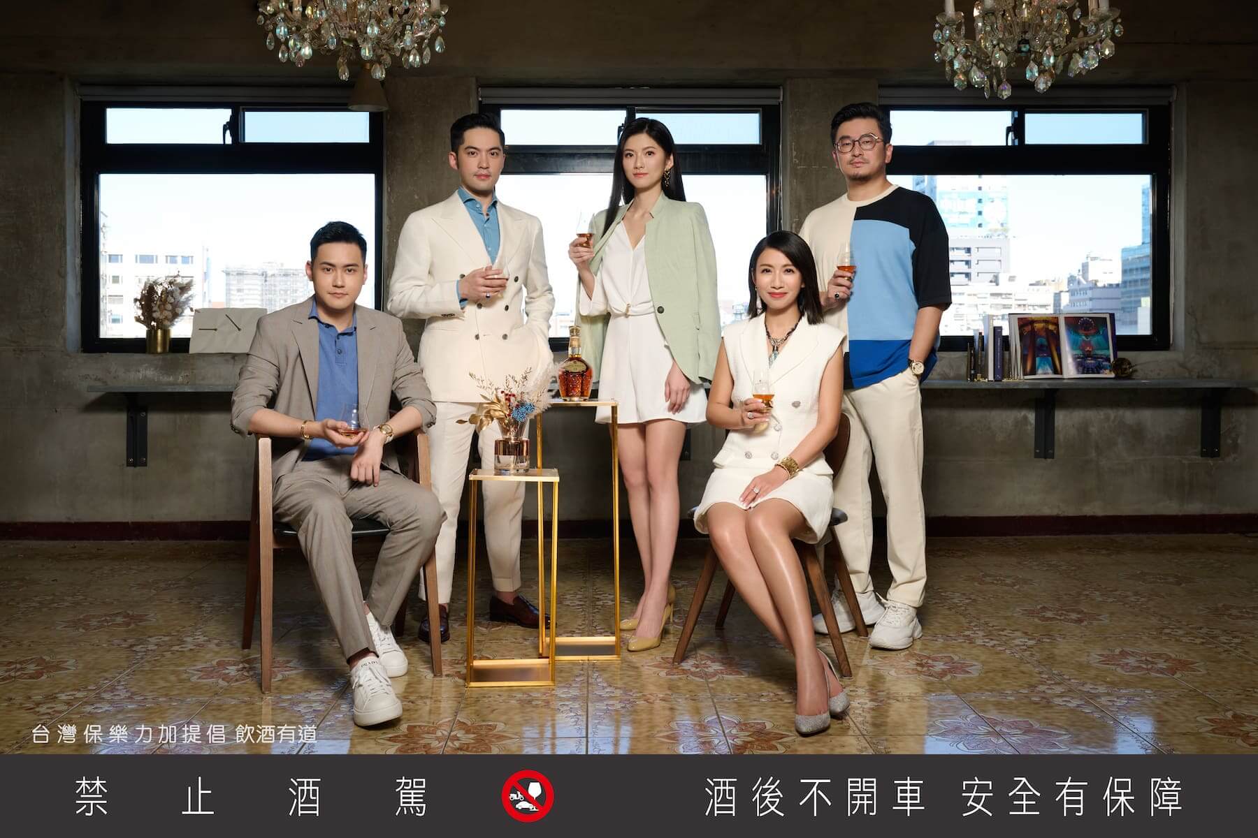 美伸學董事長暨333畫廊負責人林美伸、安境美學創辦人許家豪、D&L 丹意信實集團董事長邵瀅綺、喜事集團執行長宋文與 Weng Collection 宸諾集團執行長蔡佳宸,在不同產業和生活中探索「美學」的本質與表現方式,從畫布、設計師單椅、身上的時尚選貨,唯有精湛的好眼光,才能讓事物如裸鑽一般誕生炫目火彩,他們手上一杯「王者之鑽」調和自超過21年以上的高年份穀物威士忌,悉心雕琢如鑽澄透,正如經營美學事業的初心。