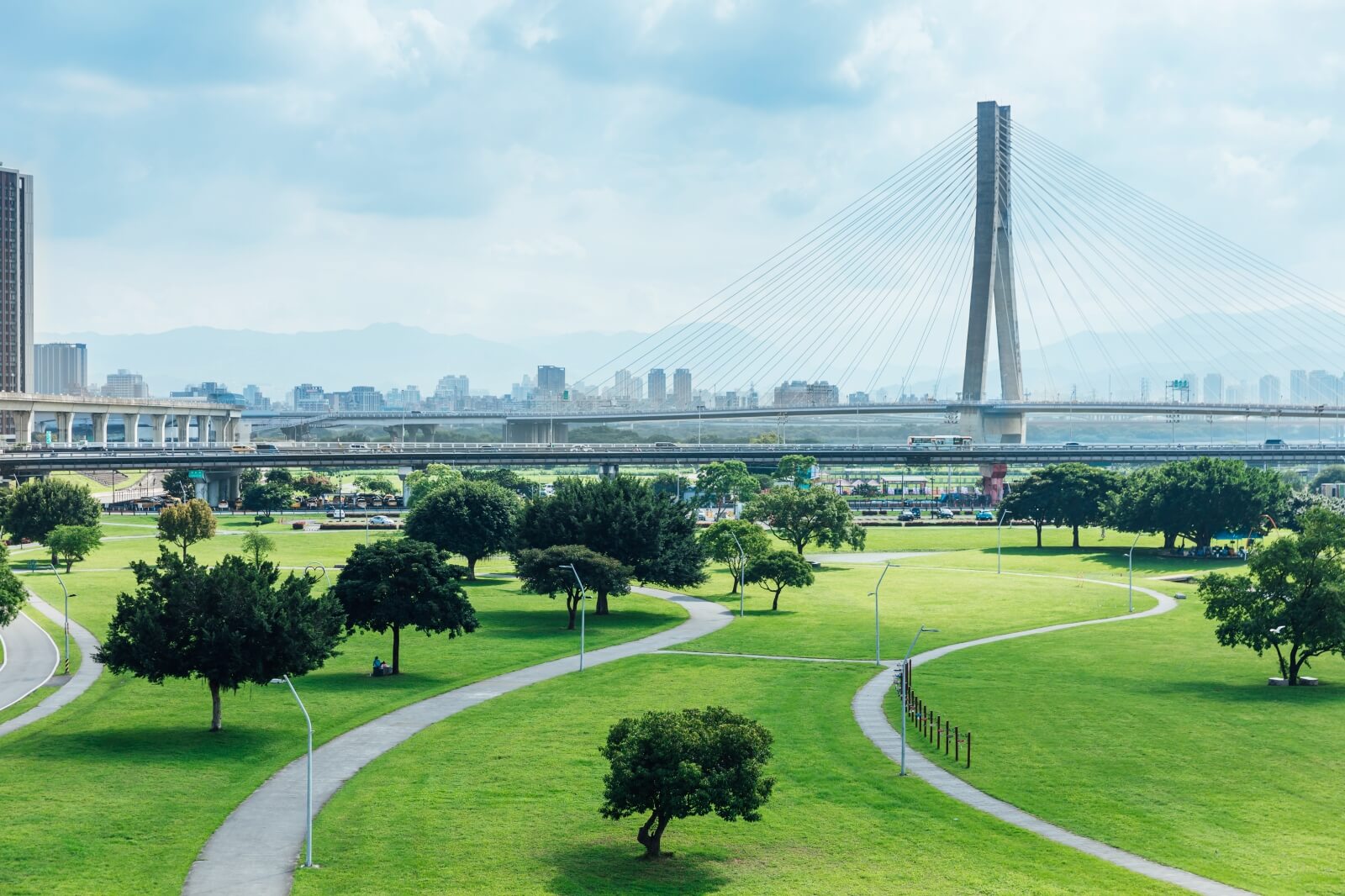 新北大都會公園面積達四百多公頃,是大台北地區面積最大的公園。全長7.7公里,一路從三重綿延至蘆洲、五股與三重。偌大的河堤腹地,涵括了公園的許多複合功能,不同的地景、設施與活動,得以滿足各個年齡層與群體的休憩需求,無疑是宜居生活中不可或缺的元素。