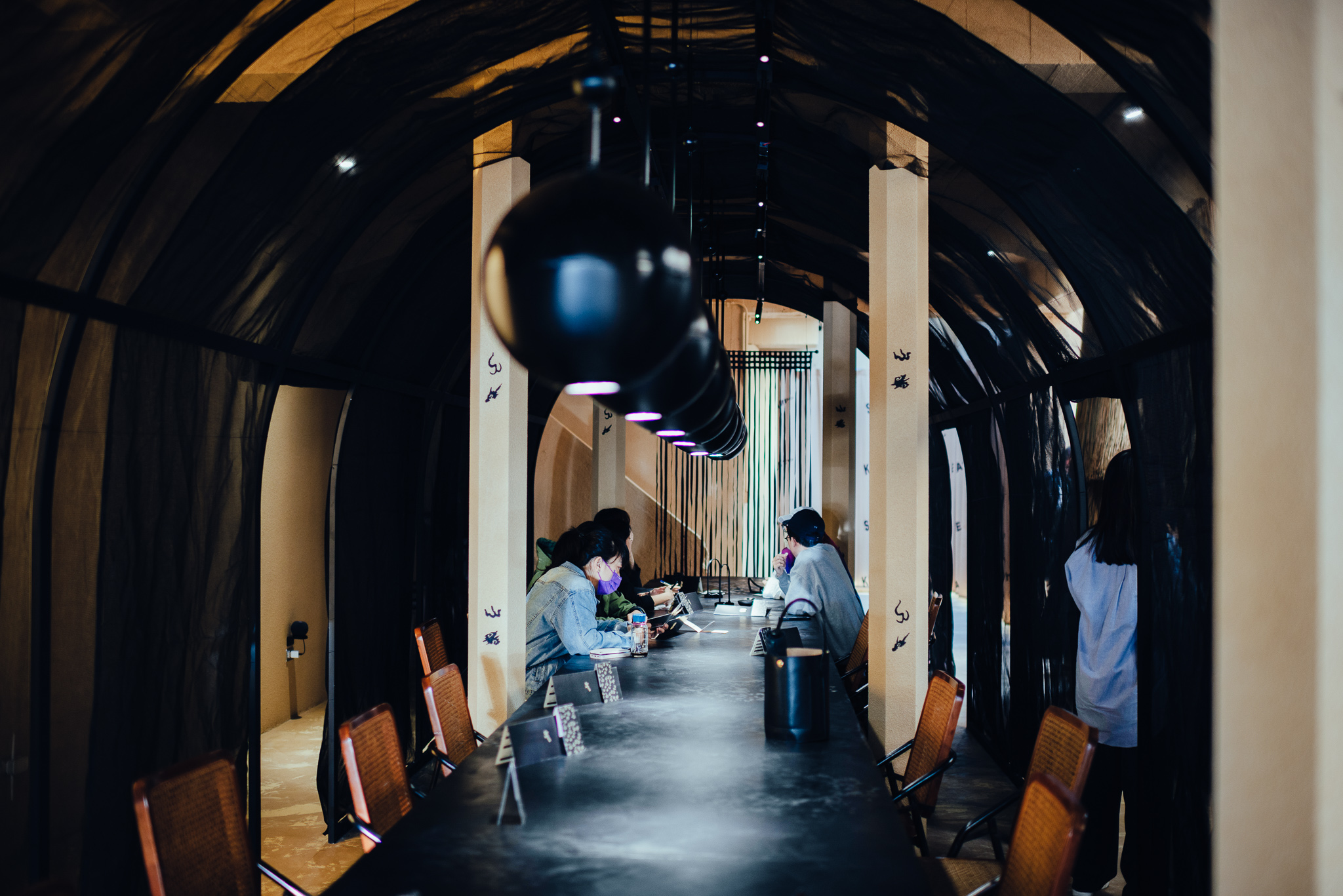 當人們享用茶飲、細聲聊天時,塑造出一種因為尊重對方而「冷淡」的美麗距離,這正是仙島安排長桌的用意。「坐在長桌時,彼此陌生的客人沒有太多距離,便會去控制音量,進而專注在眼前的飲品。」Van期望人們進入仙島時,能因為空間氛圍的營造,專注在眼前茶品細節。