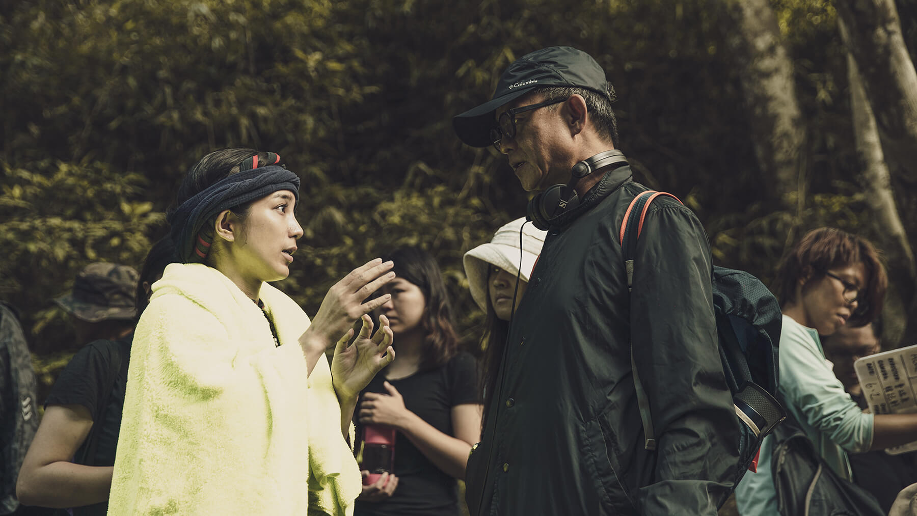 《斯卡羅》導演曹瑞原(右)與演員温貞菱在片場討論拍攝細節。