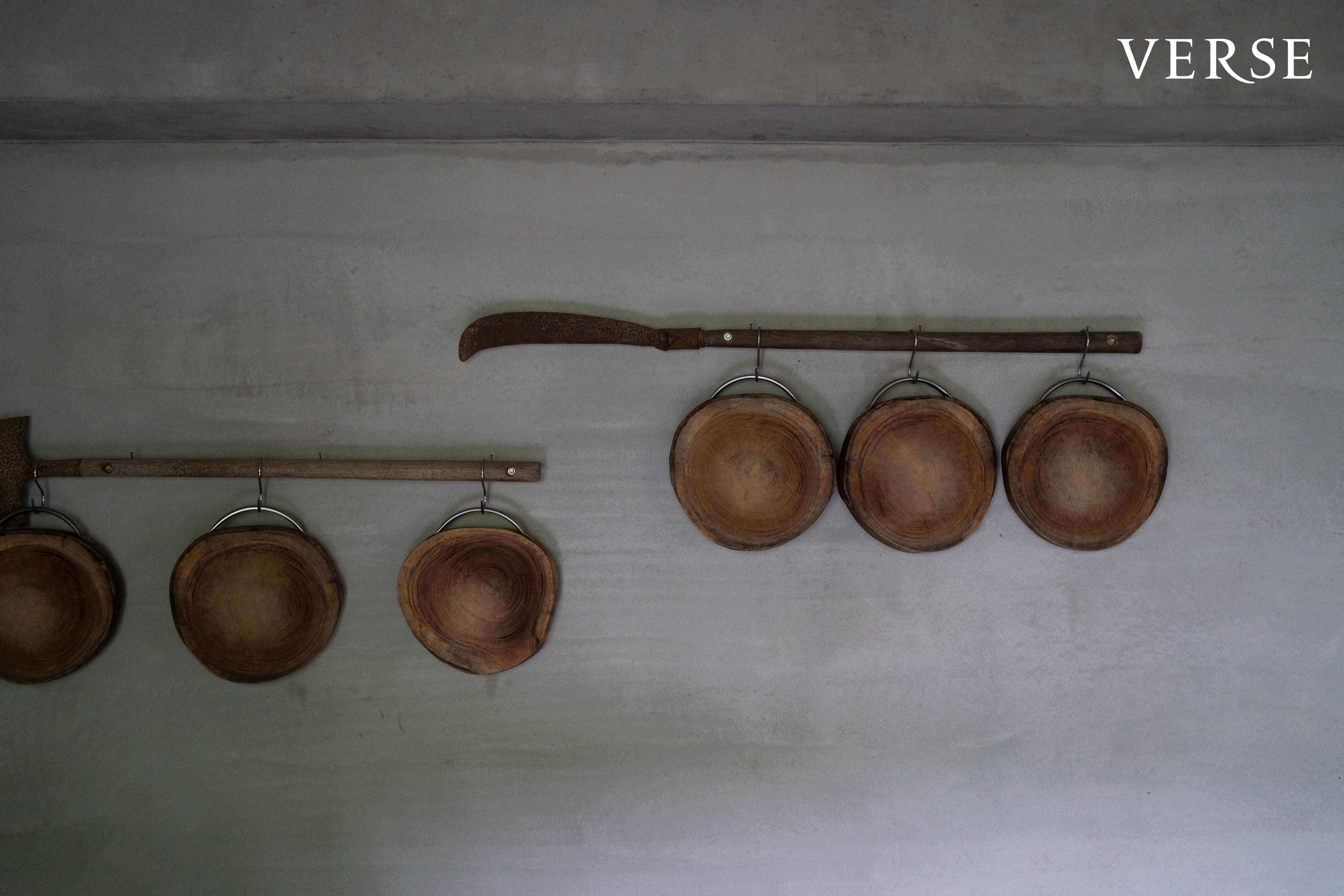 此外,設計師巧妙將原屋主的農具釘在牆上,作為吊掛砧板的裝飾,也把蒸籠改造為吊燈這些小巧思讓來訪者感受到傳統生活的細膩之處。「我們希望讓空間本身就能說故事,讓人一進來就能感受到文化的溫度。」
