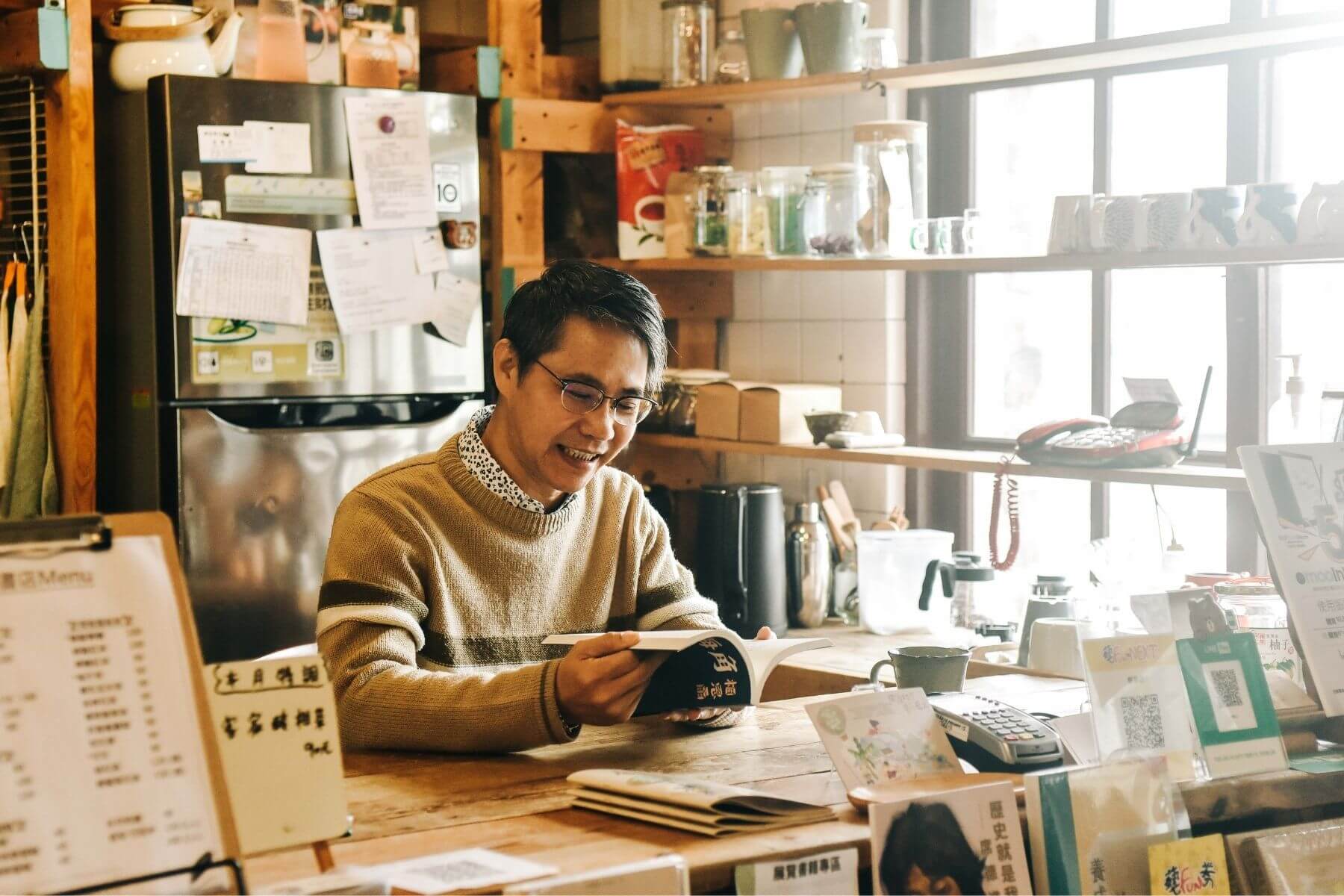 張文彬原先對童書一竅不通,但觀察到社區媽媽常會帶小孩來看書,他也開始在店內規劃繪本區;聽聞時下年輕人喜歡閱讀心靈成長類型的書籍,便在訂書時增添相關書籍品項,「但我還是會默默『偷渡』一些市民平時不會接觸到的書籍,希望能為新營市民的日常生活中帶來些許擾動。」