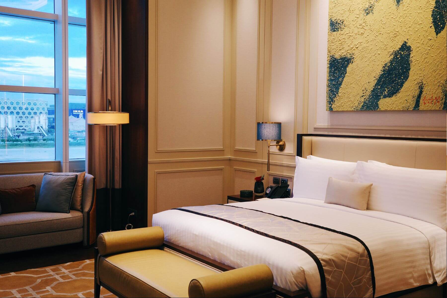 酒店住房設施則是奢華與極致的享受,全區有793間寬敞舒適的豪華客房,其中,「Sky Tower」可享受無任何遮蔽、全視角的浩瀚海景,或者入住「Bay Tower」可眺望此區地標摩天輪,依傍海灣與夕陽的港灣景緻。