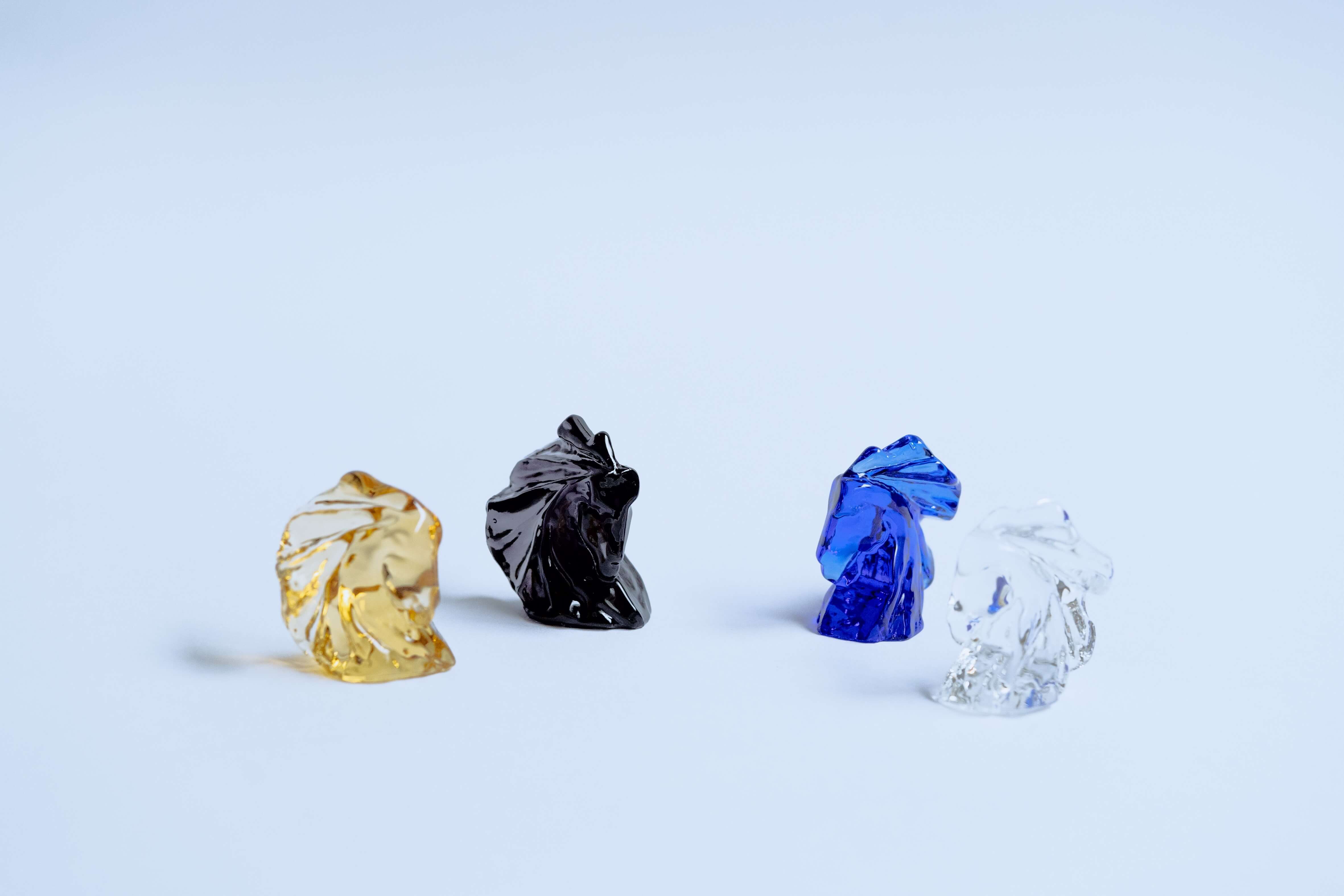 本次合作的特別亮點,來自以「金馬獎經典獎盃」為靈感所延伸的扭蛋款式。自1962年創立以來,金馬影展以昂首躍起的駿馬造型獎盃象徵電影藝術的文化與創造力,今年春池以玻璃工藝重新詮釋這份意象,透明材質翻轉金屬的重量,光的折射取代金箔的光澤。這樣的轉譯,不僅是對每一位電影人的致敬,更是一種對「榮耀形式」的再思考,讓經典時刻得以更輕盈的方式永續保存。