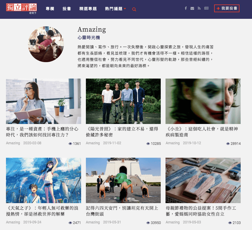 把email放進作者頁自我介紹欄位後,曾彥菁開始收到讀者來信。