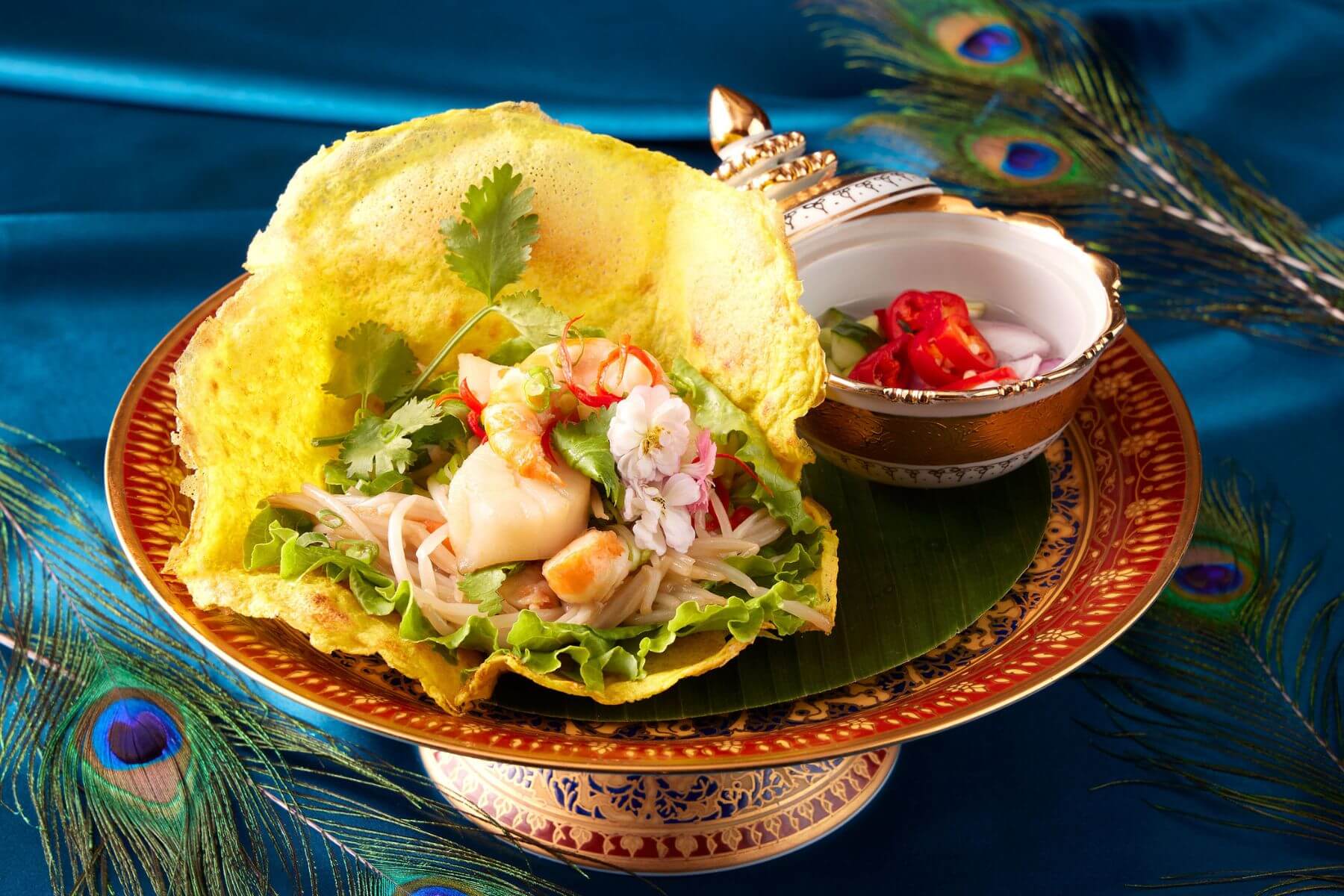 SUKHOTHAI餐廳在迎來新廚後,重整既有菜色風味,口味上更趨於曼谷首都菜的圓潤,辣、甜、酸、鹹都不能過度。全新11道料理從開胃菜、酥炸燒烤、經典海鮮、泰式熱炒到甜點皆有新花樣。