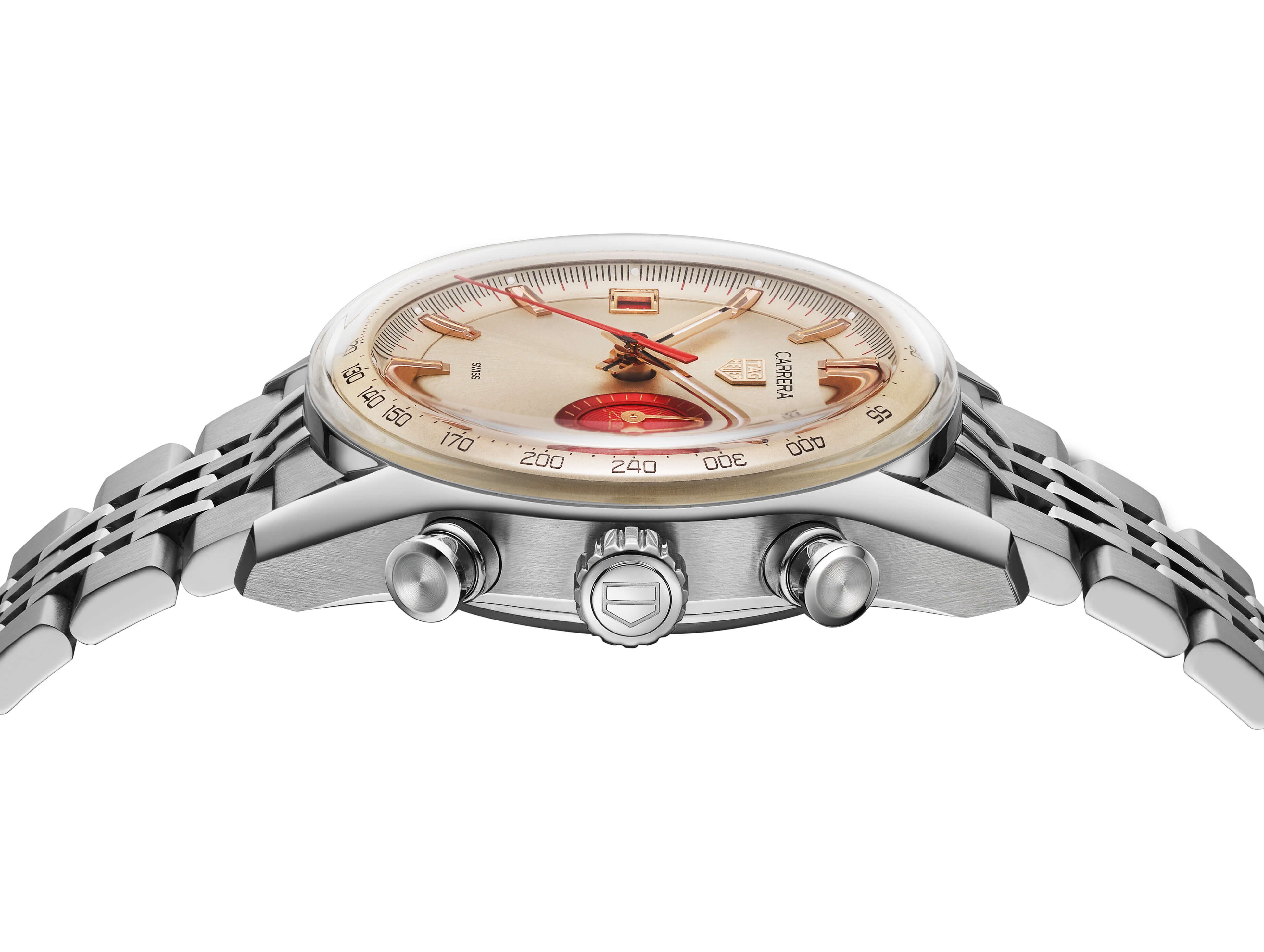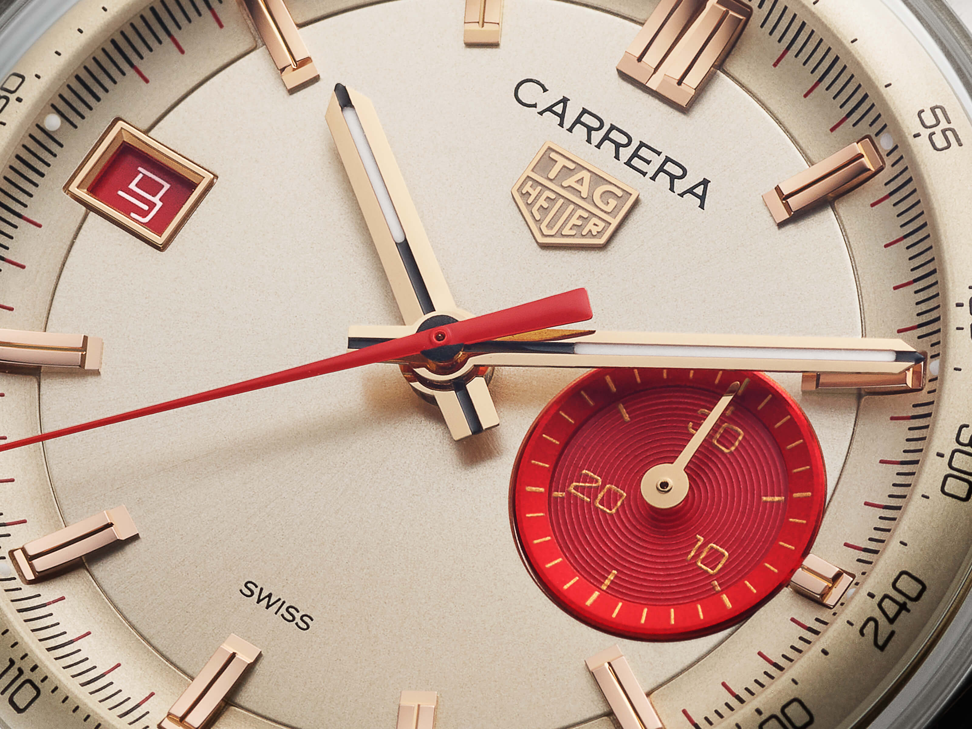 作為因賽道而生的經典系列,Carrera 一直以來都以精準工藝演繹速度美學。全新 TAG Heuer Carrera 馬年限量版腕錶採用39 毫米錶殼,結合品牌引以為傲的獨家 Glassbox 拱形藍寶石水晶鏡面設計,搭配 18K 5N 玫瑰金指針與時標,並以華麗紅色細節點綴,讓整體視覺更具張力與層次。全新經典七珠精鋼鍊帶飾以精緻磨砂與拋光交錯處理,增添精緻質感、同時也兼顧了人體工學的佩戴舒適度,與 Carrera 系列標誌性的修長錶耳設計相得益彰。