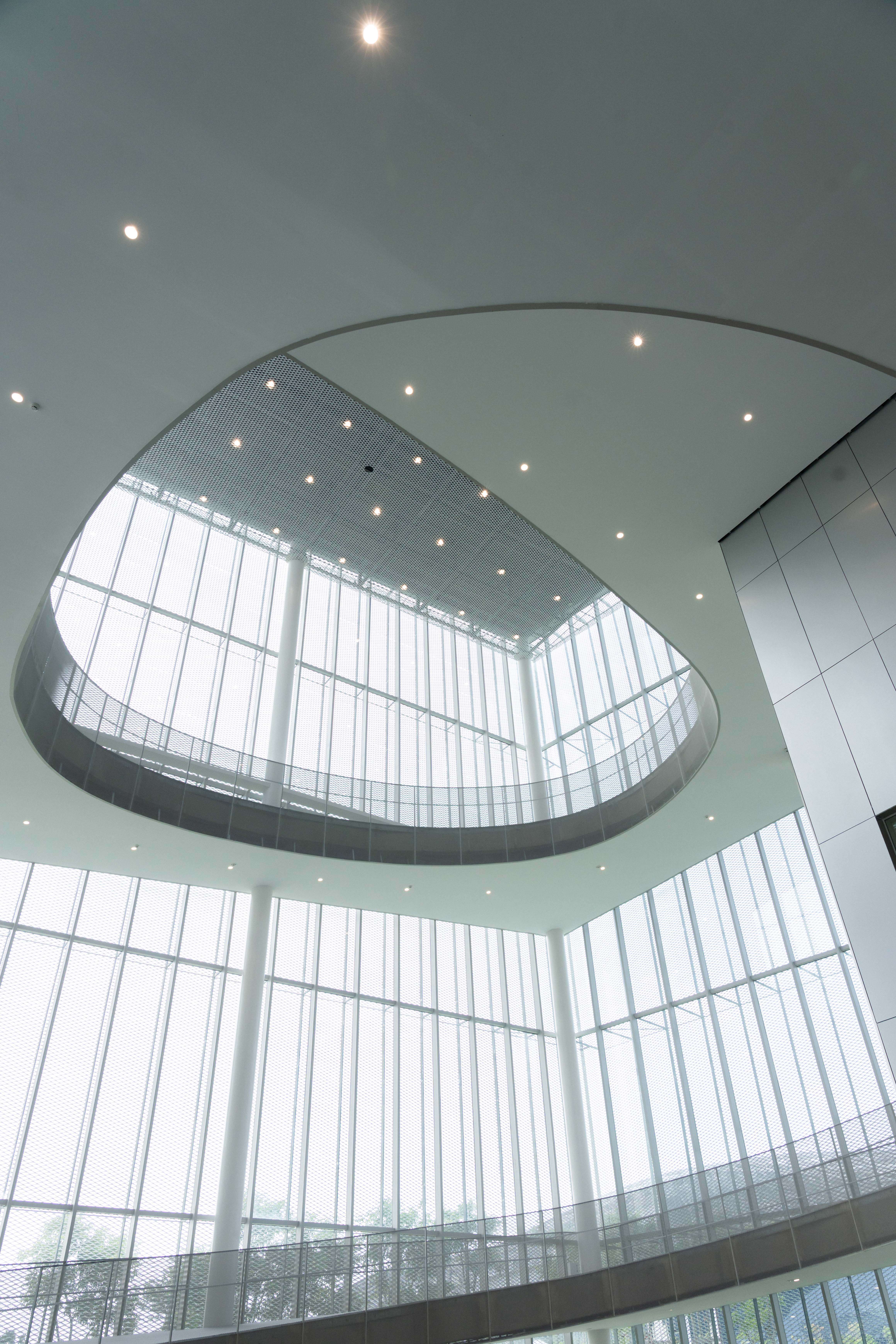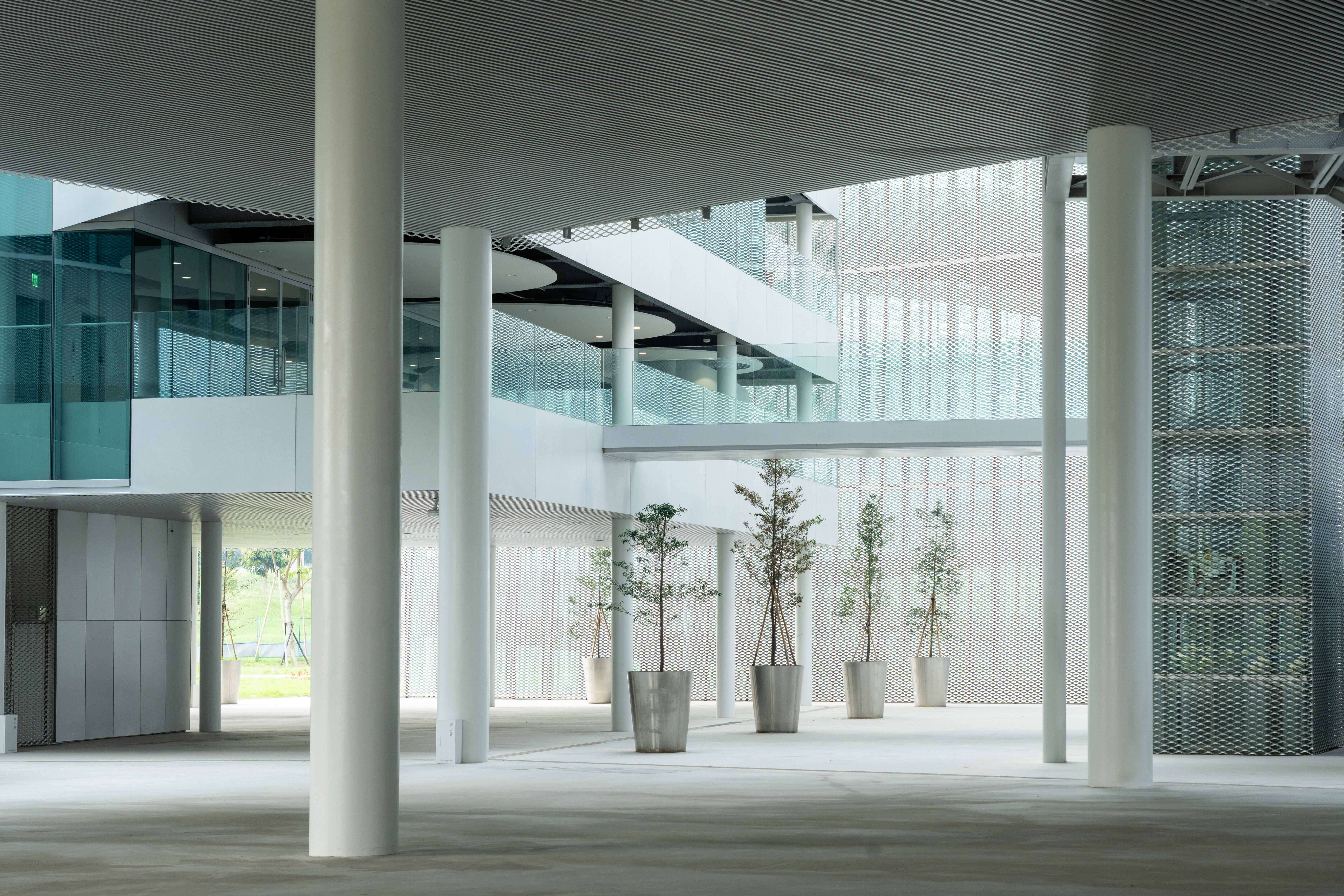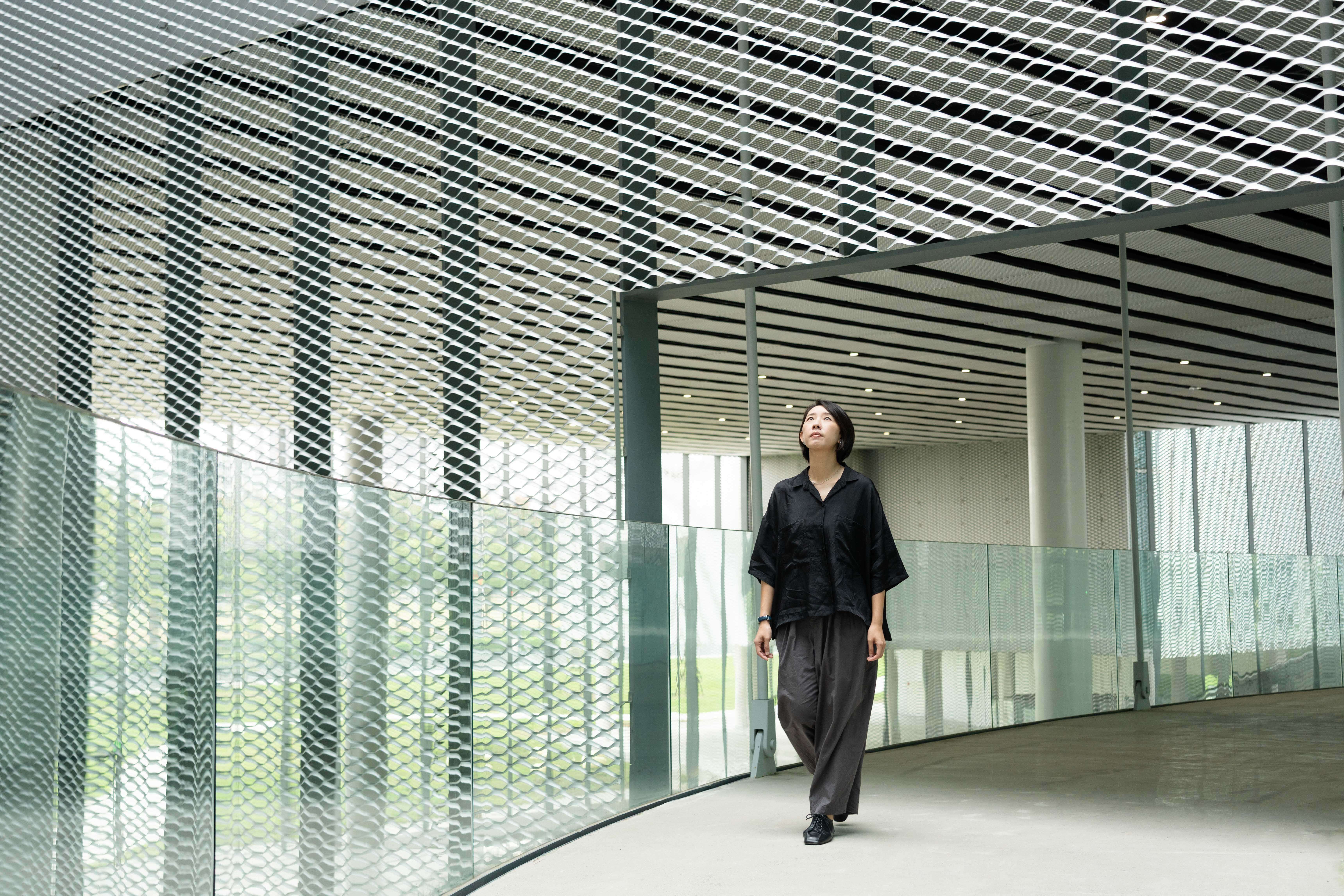 綠美圖是全臺首座美術館與圖書館共構的場館,其中「文化之森」作為連接兩館的廊道,消弭了建築與自然的界線,也象徵著她們正在面對的命題 —— 當美術館與圖書館共處一個屋簷下,該如何消弭彼此的界線,又該如何守住各自的邊界?