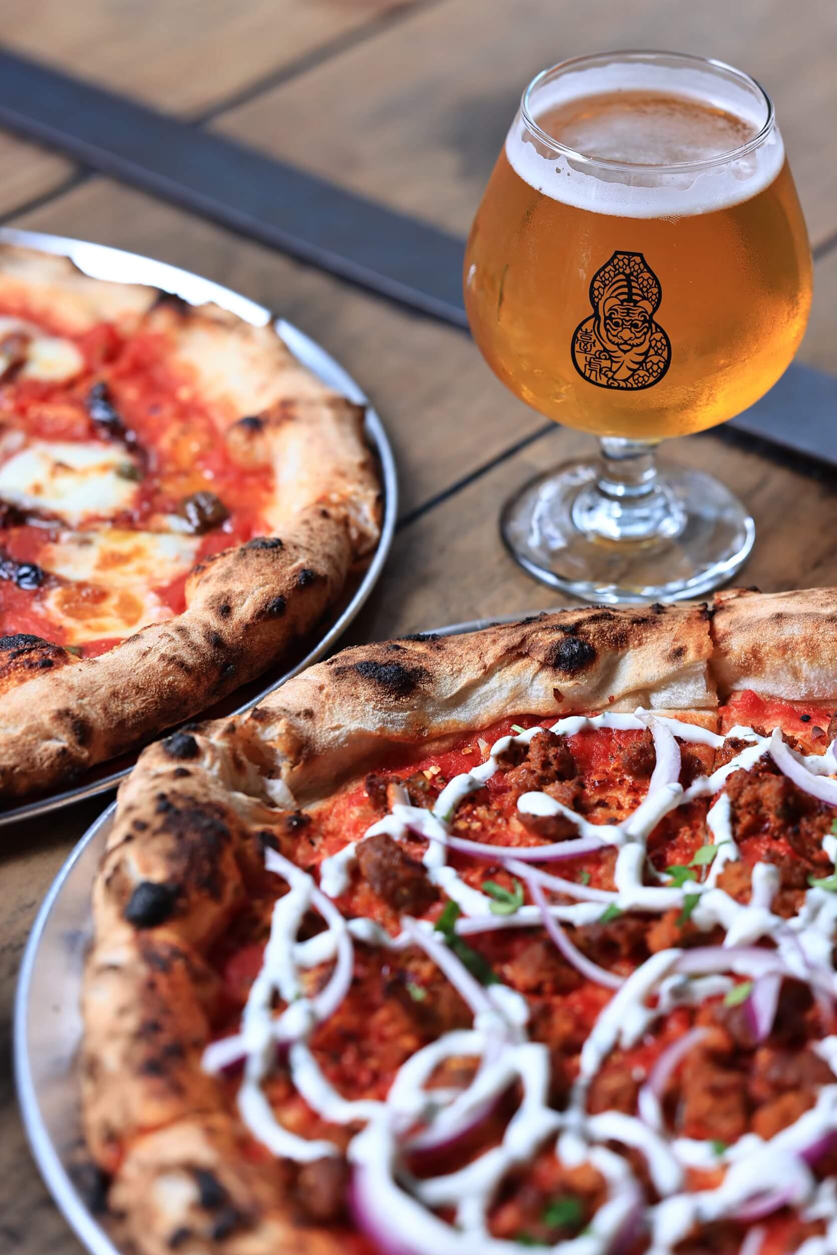 西班牙煙燻臘腸Pizza使用伊比利豬臘腸,鹹香濃郁;義式香腸Pizza則搭配自製茴香香腸與芝麻葉,帶來細緻香料層次。還有各種火腿與Salami組成的熟肉拼盤,成為搭配酒款的理想選擇。臺虎嗨啤的清爽氣泡,與重口味披薩創造出完美平衡;而臺虎IPA的熱帶果香與豐富酒體,則與熟肉拼盤相得益彰,形成美味的協奏。