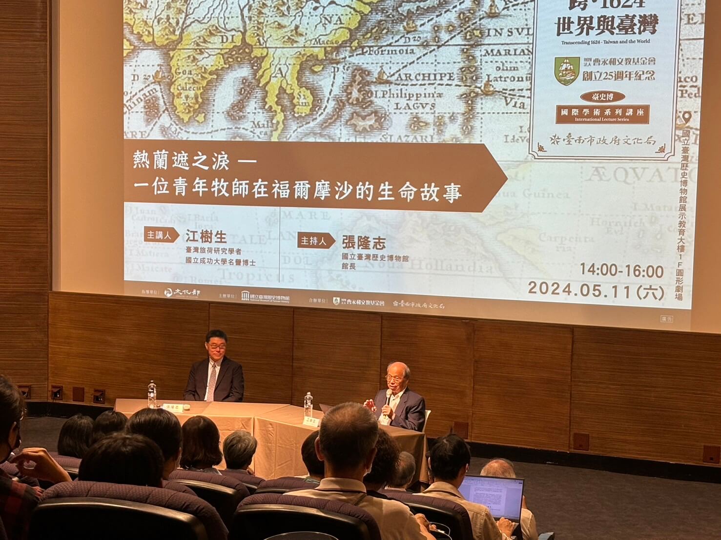 1624 講堂首場由旅荷臺灣史學者江樹生為講題「荷治海貿與爭霸」揭開序幕。