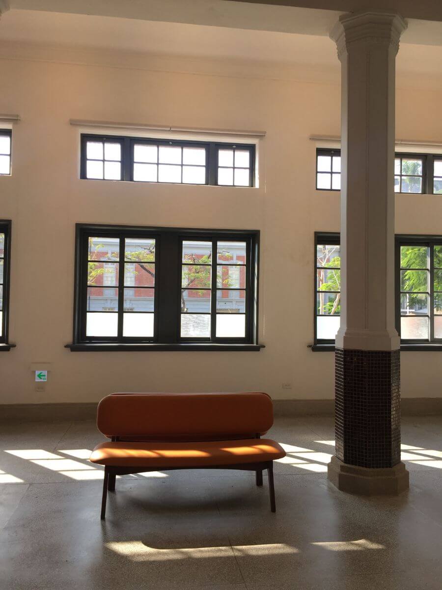 南美館一館的前身是日治時代的警察署(上圖),今日的咖啡廳在當時是拘留所空間(下圖)。