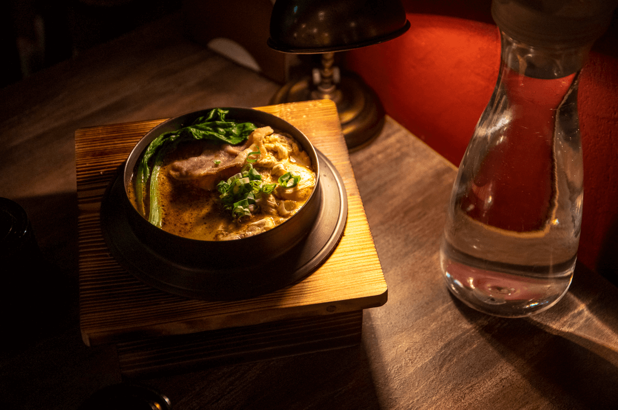 不只調酒,赤崁中藥行與台南知名燉補養生餐廳「烏禮」合作供應無添加的滋補雞湯,清淡卻有鮮雞馨香,來酒吧養身體就靠這帖!而下酒靈魂「牛三寶」則以複方中藥熬燉滷汁,帶來馥郁不油膩的牛筋、牛肚、牛腱與調酒搭配超對味。