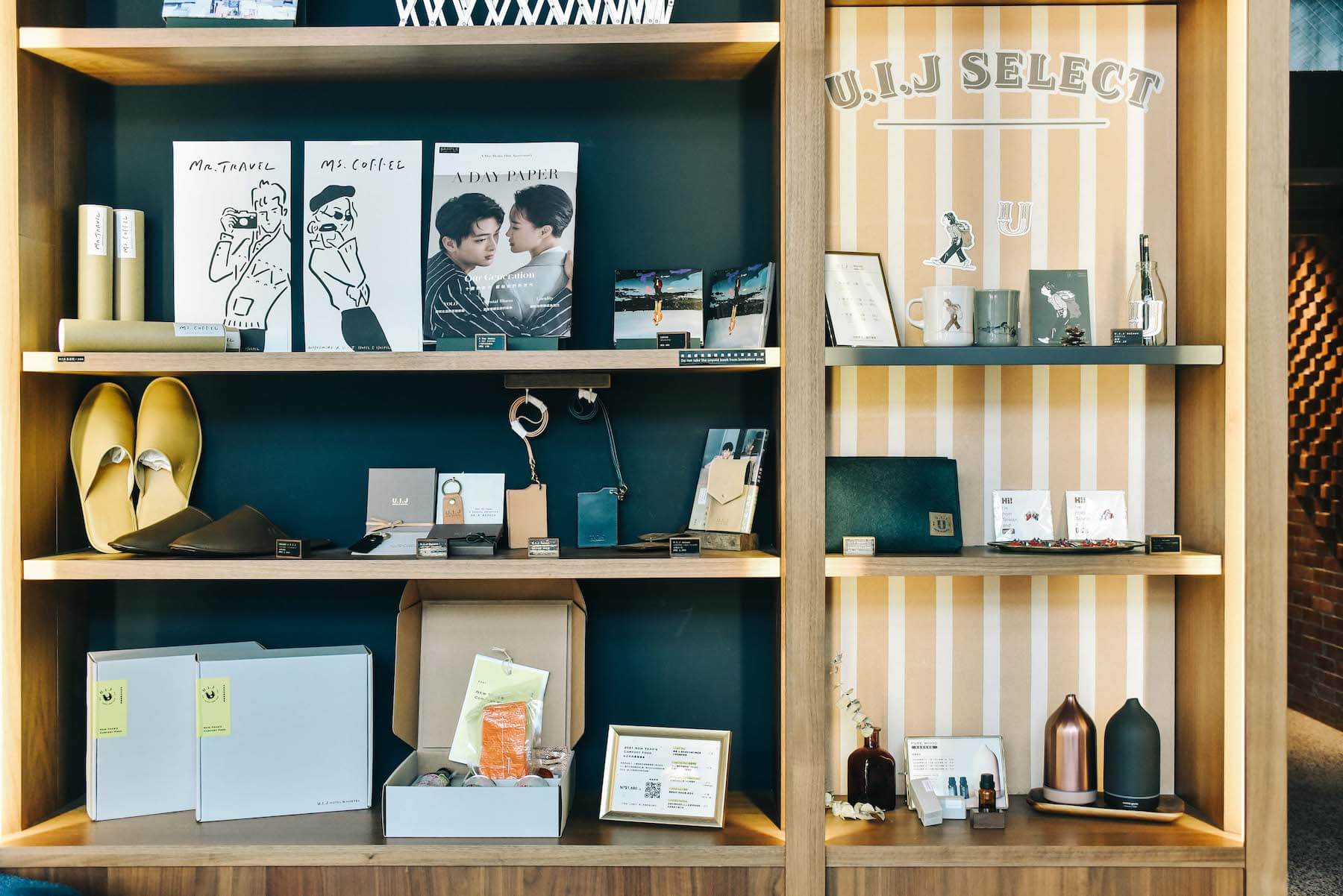 U.I.J 的「質感」無聲地展現在起居細節的堆疊之中,亦匯集了台南及台灣的設計品牌及製造工藝:手工鞋品牌林果良品、LIAO STUDIO有料革製設計所,台南在地的合成帆布、男裝品牌Oqliq及金工藝術家等,讓優良的台灣製品被世界看見。