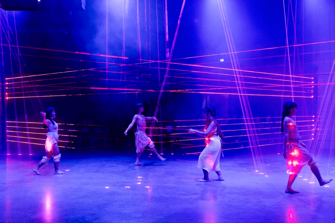 而在台灣的山林之間,太魯閣族傳承者東冬・侯溫與新媒體藝術先鋒鄭淑麗,則共同實踐了「科技薩滿主義」(Technoshamanism)。《遊林驚夢:巧遇Hagay》以數位影像與雷射藝術為導航,將遠古的Gaya傳說與當代酷兒性別認知交織。這場遊走於神話與未來的夢境路徑,展現了傳統智慧在數位時代中如何產生全新的變形,並在科技與靈性之間開啟了一場深刻對話。