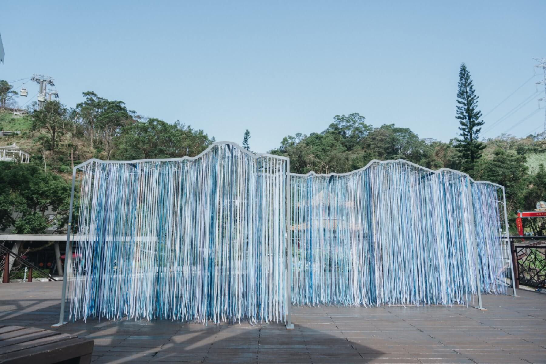 藝術家王振瑋的布條裝置《山川縷縷》。