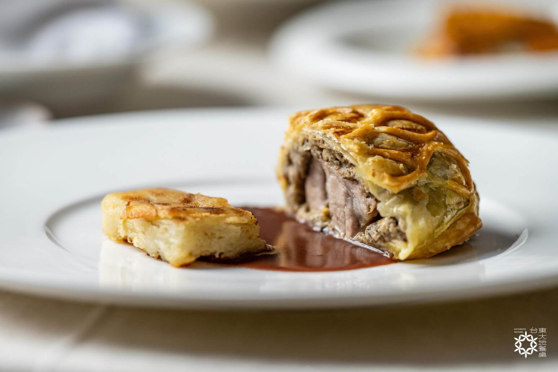 威靈頓豬排使用台東溫體豬,醬汁以鹽膚木提味,搭配源緣園生產的黃金馬鈴薯;義大利麵餃以太麻里海水養殖的白蝦為餡,佐以主廚特調的荖葉青醬。從東海岸到縱谷,七道珍饌表現臺東豐饒,主廚無所不在的巧思,都是離開台東就難以嘗到的驚艷風味。