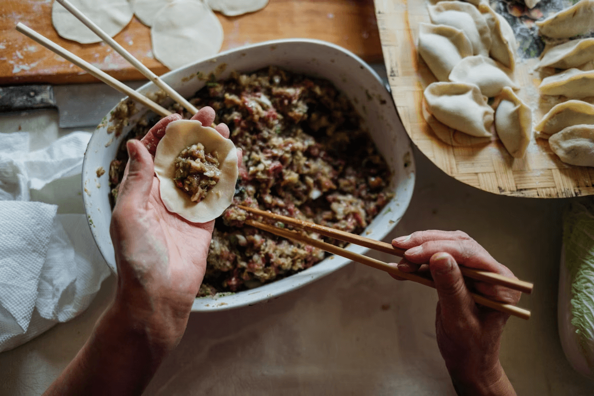 包水餃是常見的家庭活動,而每個家庭的水餃配方都各自有特色。