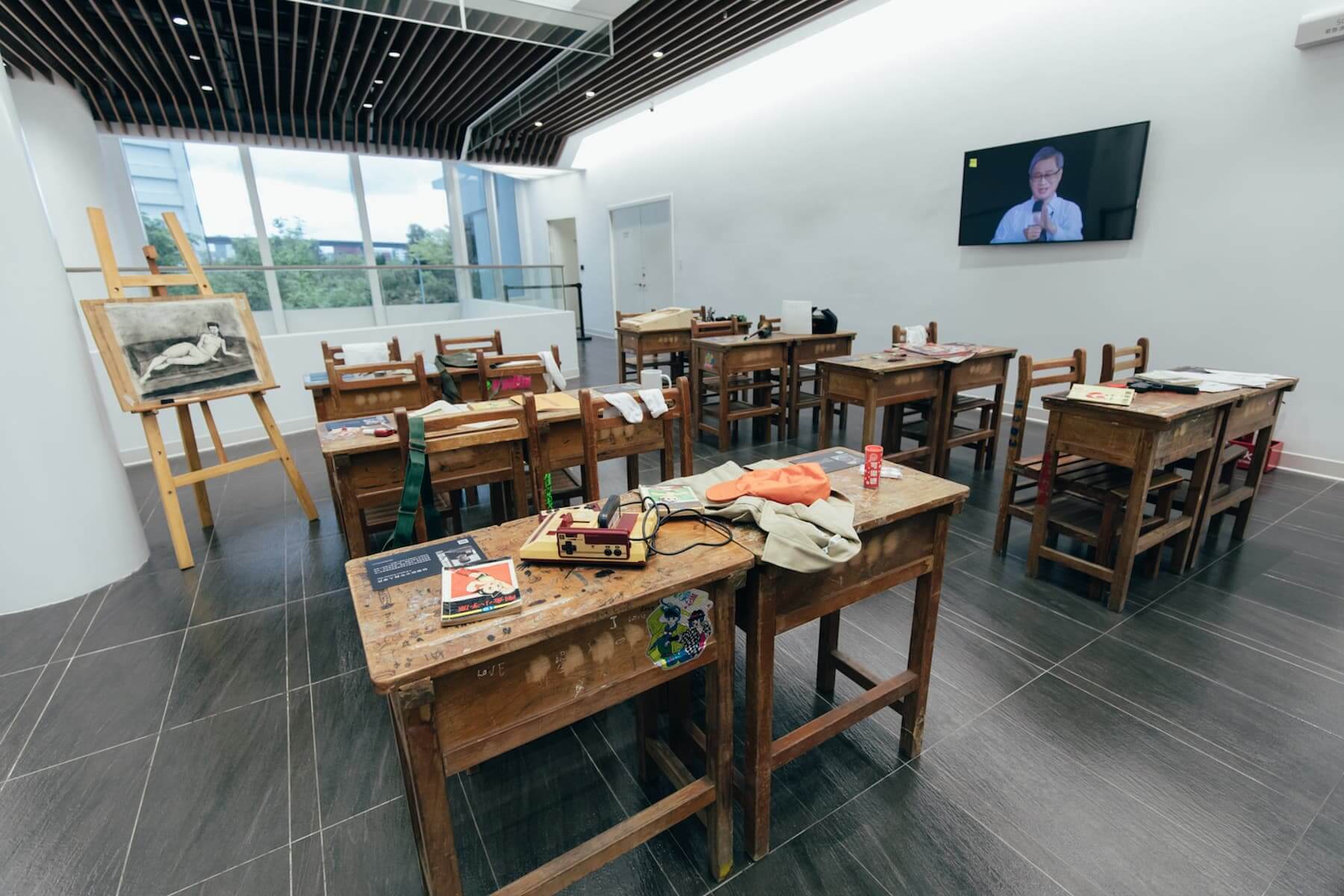 「再新電影出發的時候:臺灣新電影四十年回顧」主題影展,二樓影廳外實體互動策展品(圖片/國家影視聽中心提供)