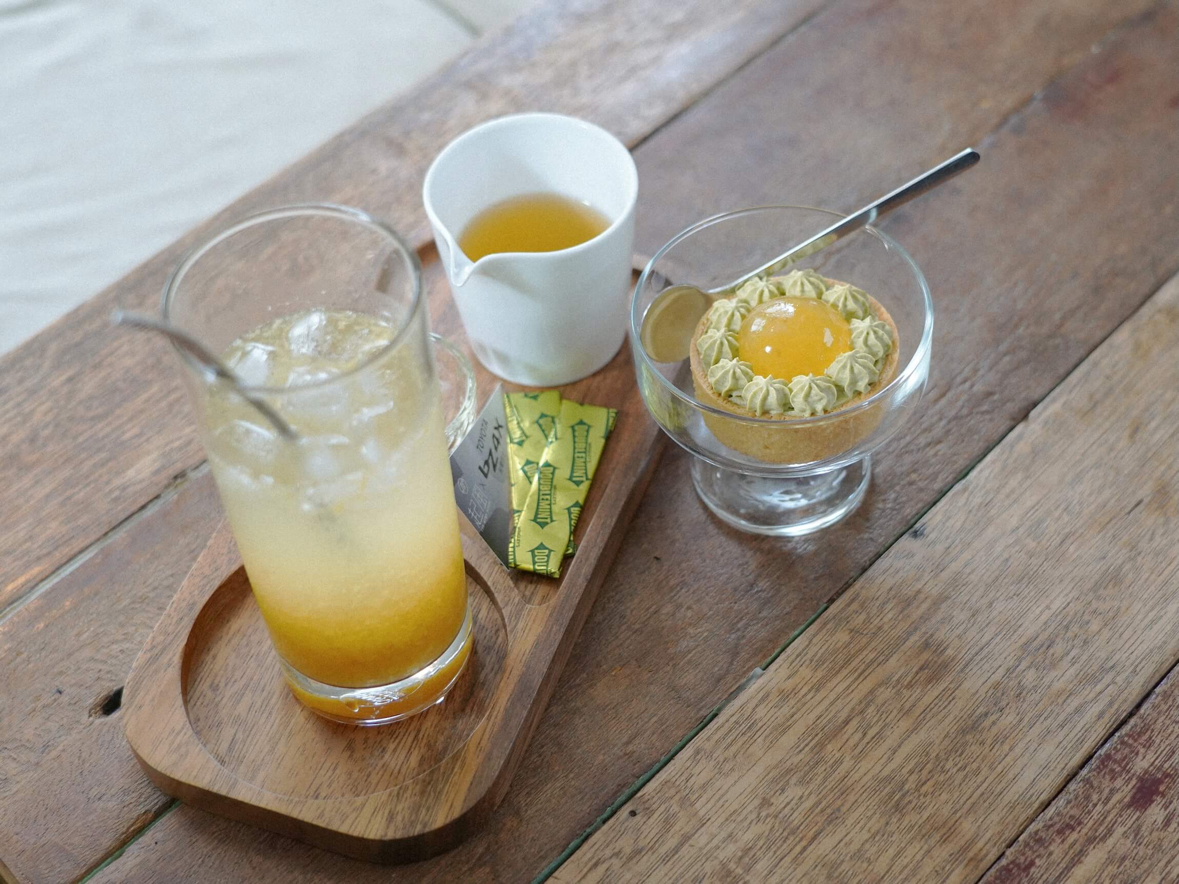 繼續北上,嘉義的日光明亮而直接,城市尺度不大,生活感卻很完整。這裡的飲食文化向來擅長用清爽的味道留下人,茶與果香經常出現在日常餐桌上。起風茶室的空間安靜,卻不疏離。它更像是一個讓人坐下來整理味覺與心情的地方。這次的料理組合以在地食材為出發點。鳳梨、高山茶、梅子與檸檬構成整體風味的骨架。鳳梨醬茶鮮奶油塔的甜度控制得很輕,茶香在尾韻慢慢出現;鳳梨青茶氣泡帶著清爽果酸;青心烏龍回到最乾淨的茶味;梅子乾則在口中留下短暫卻清楚的酸度。