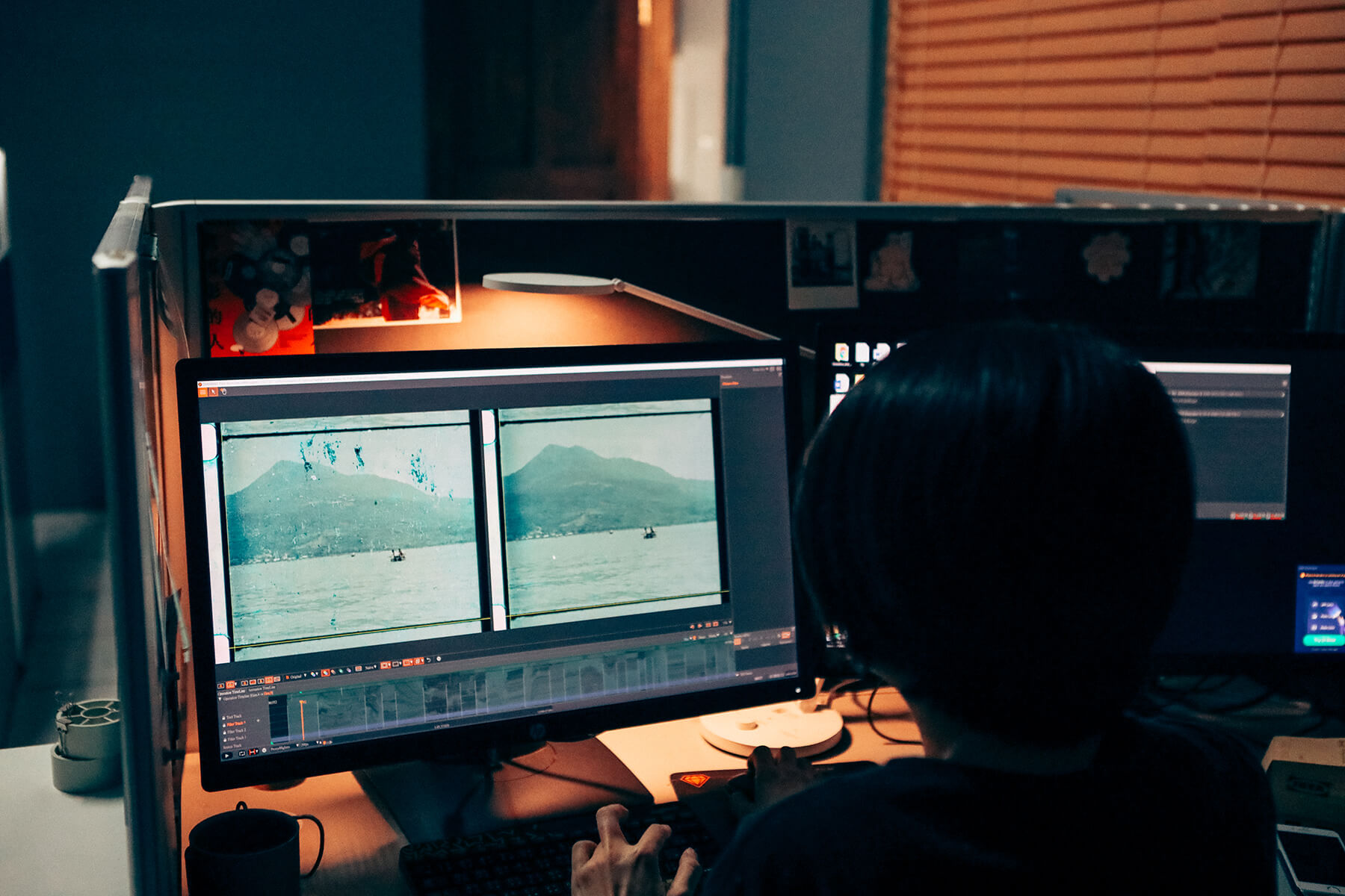 影像數位修復師,藉由軟體系統,手動調整影片的穩定度,並清除畫面中的髒點、刮痕、雪花等等。