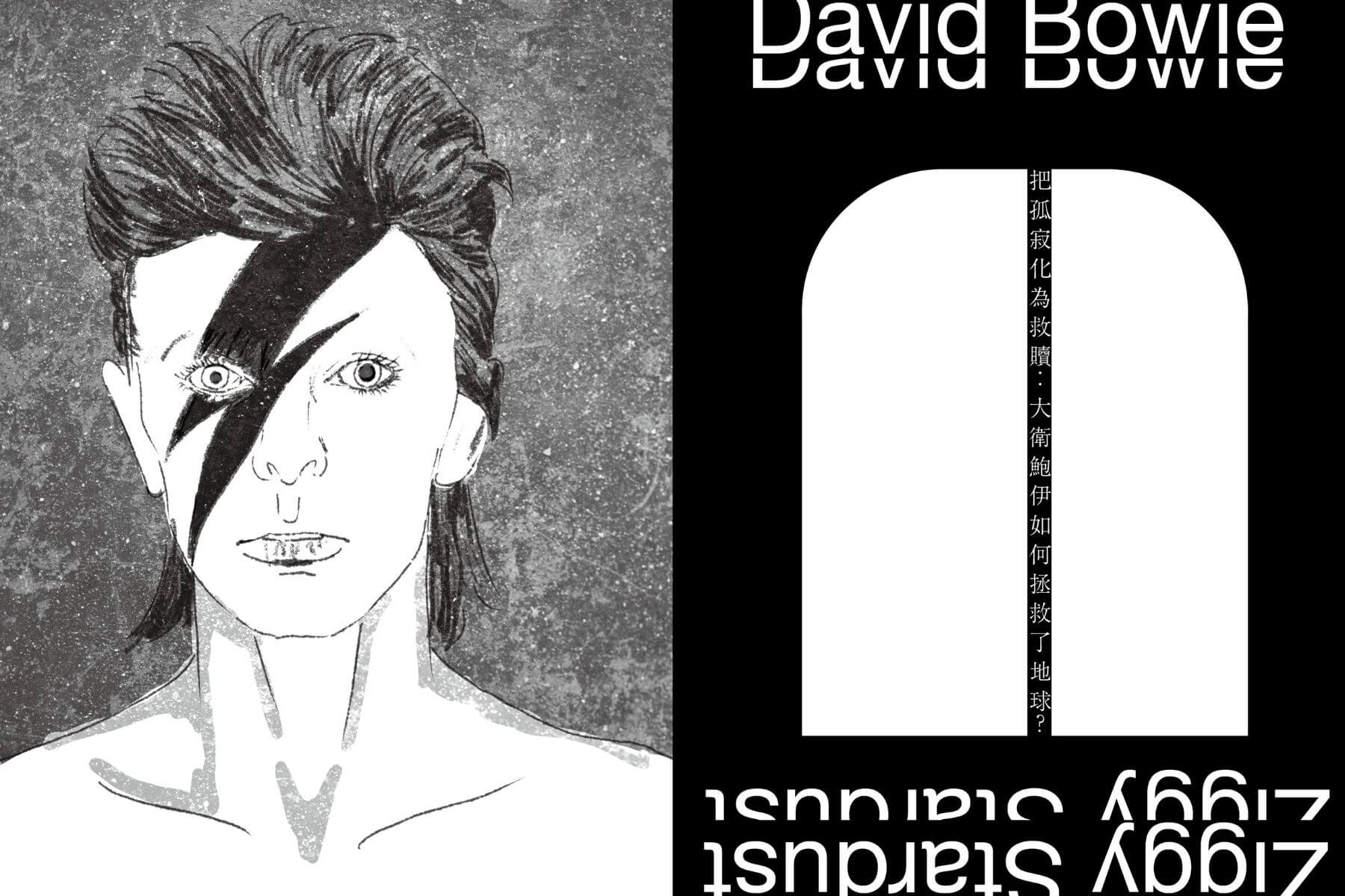 David Bowie在1972~1973年期間所創造的「Ziggy Stardust」角色形象,集太空人、外星人、性別流動的雌雄同體設定於一身。(插畫/朱疋)