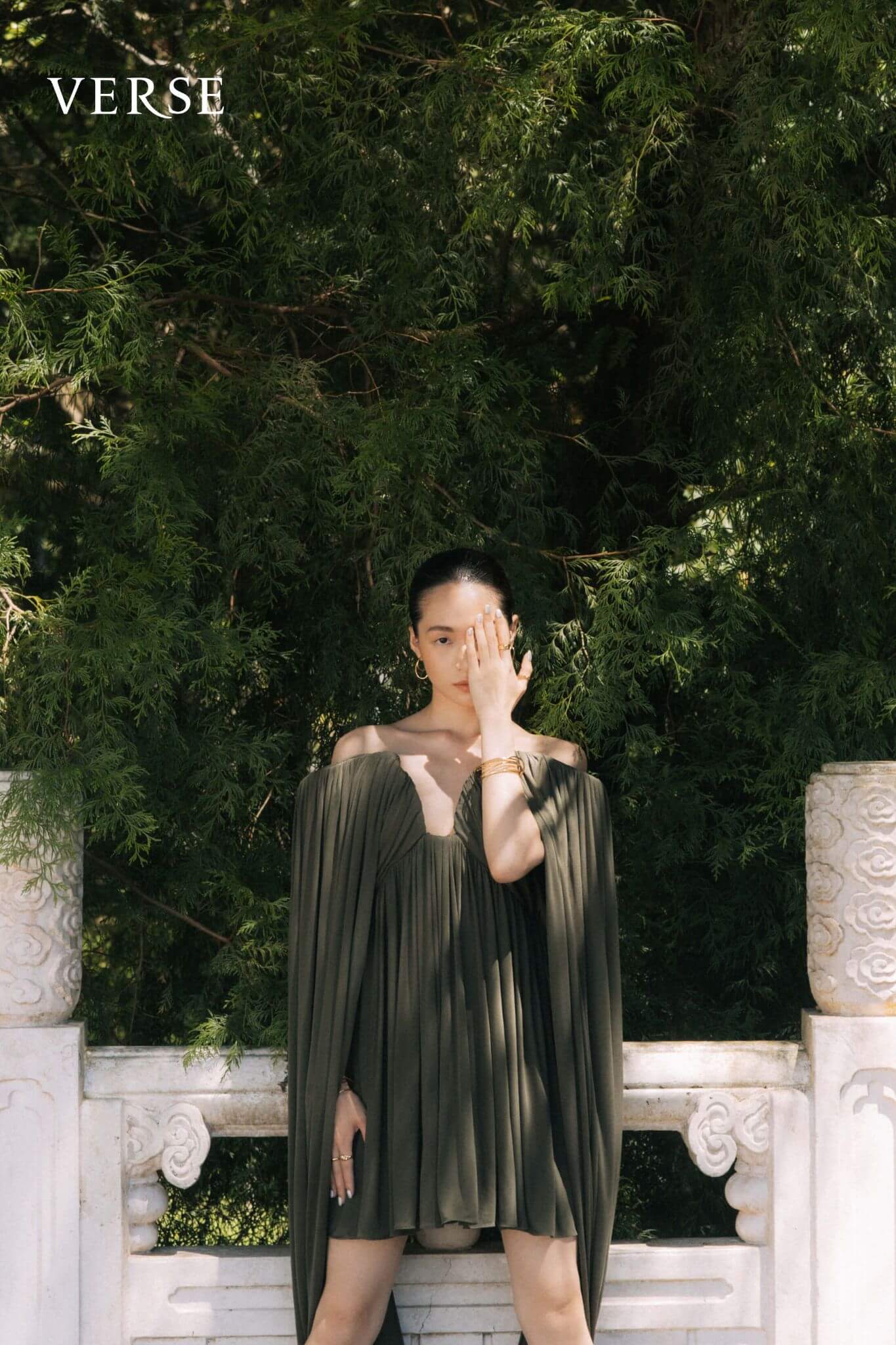 位於故宮一隅的至善園,以仿古宋明庭園景緻,亭台樓閣、曲水迴廊,營造出優雅氣韻。以一襲Ralph Lauren 長禮服緩步駐足,裙擺迎風飄送,細膩展現出絲絨的光澤與剪裁。