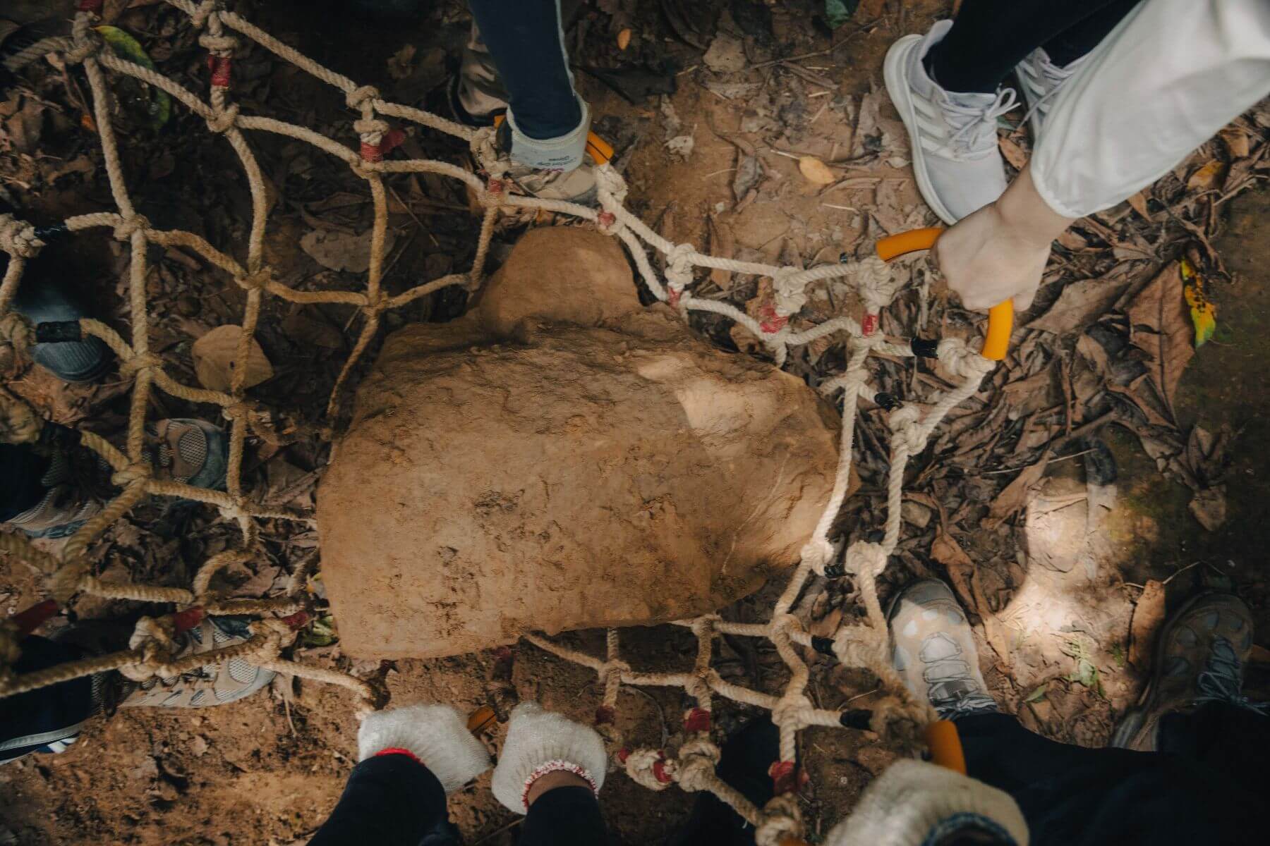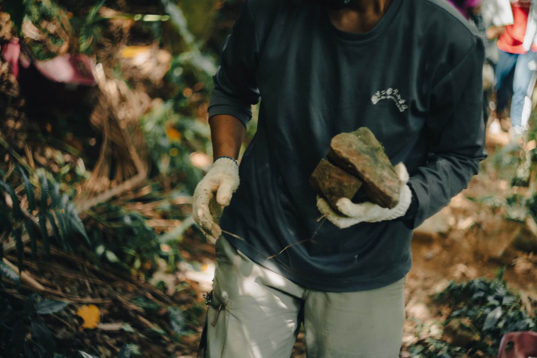 徒手搬運石材作為步道基底。