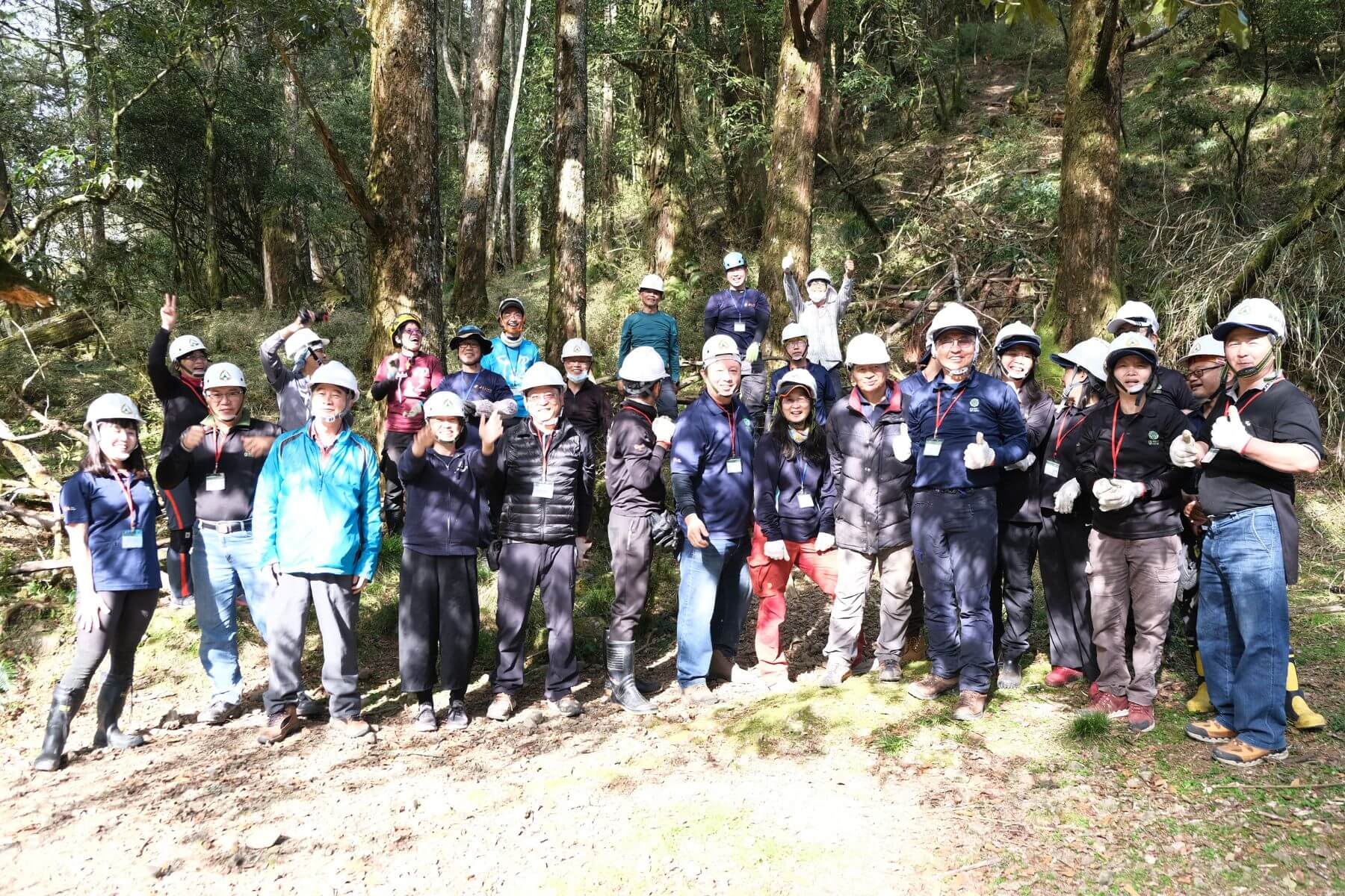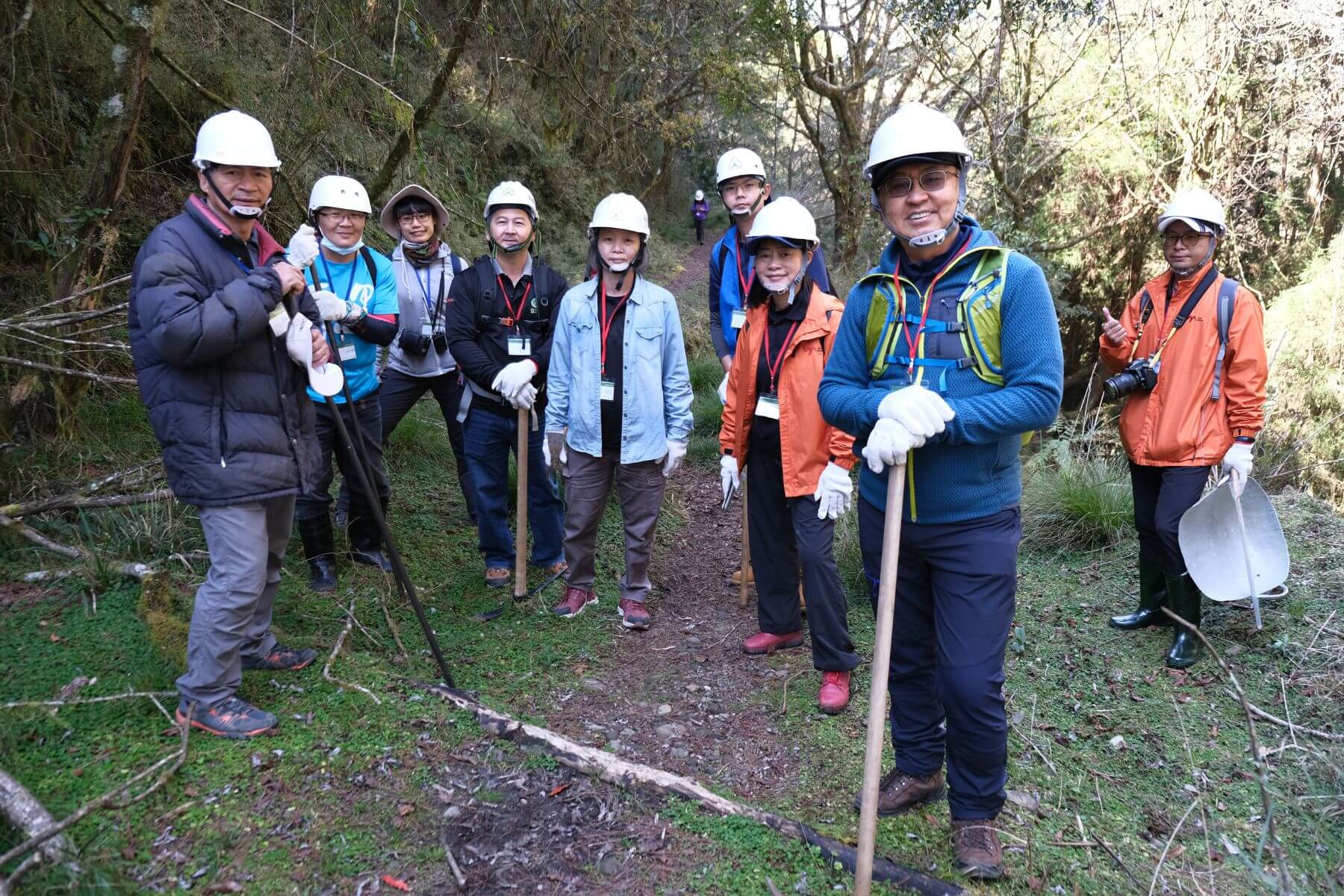 大亞電線電纜股份有限公司董事長沈尚弘(前排右三)帶領同仁進行玉山林道手作步道活動。