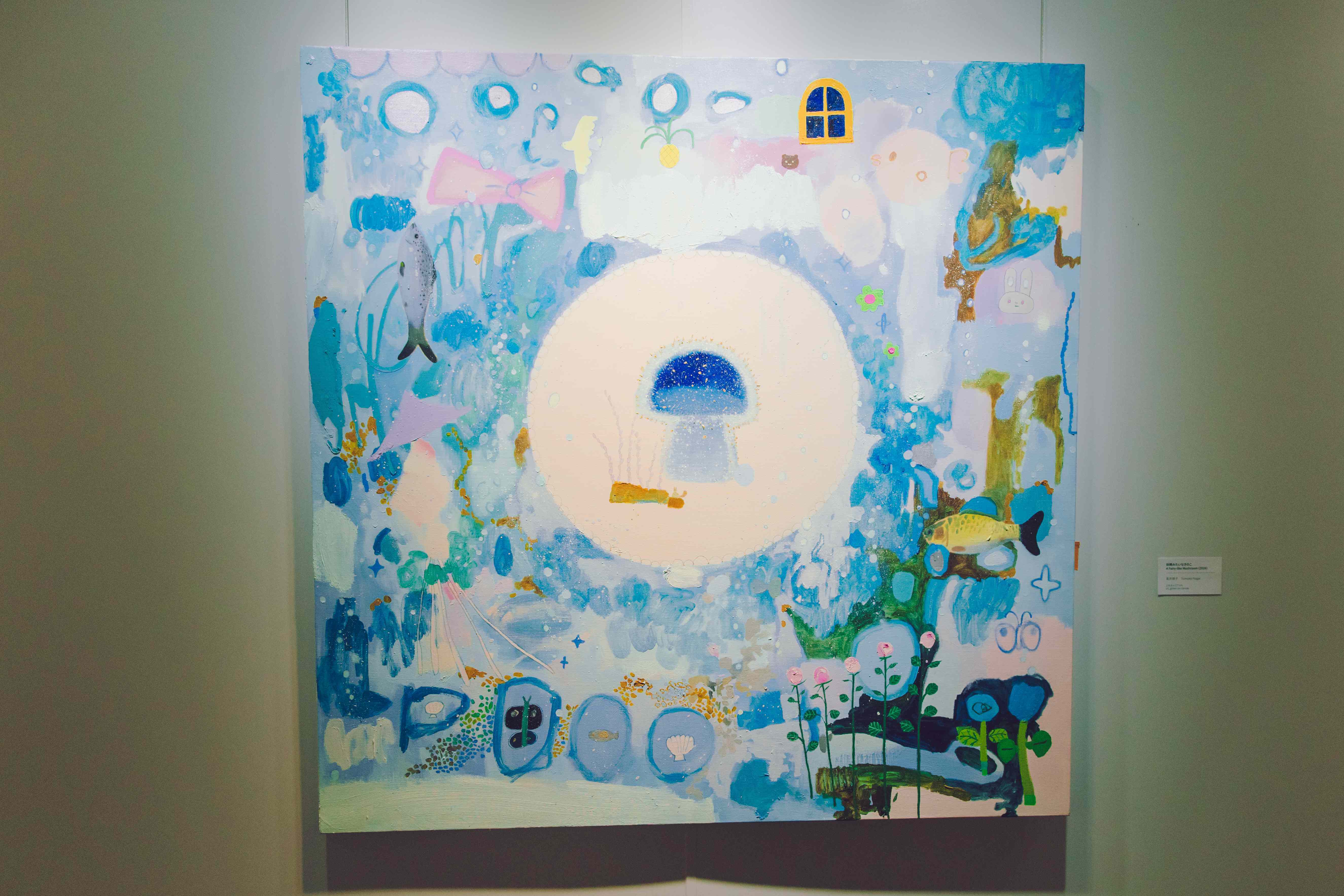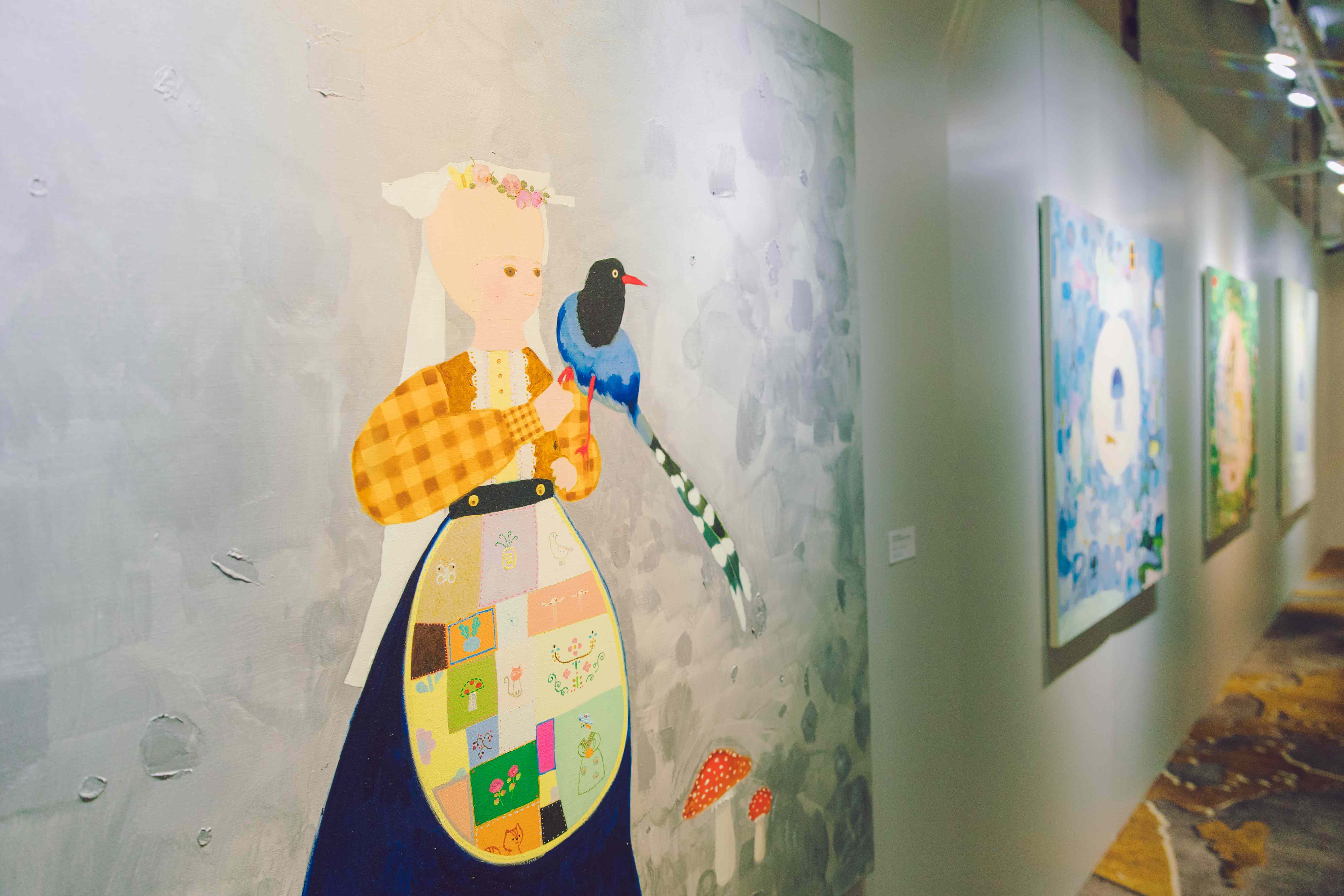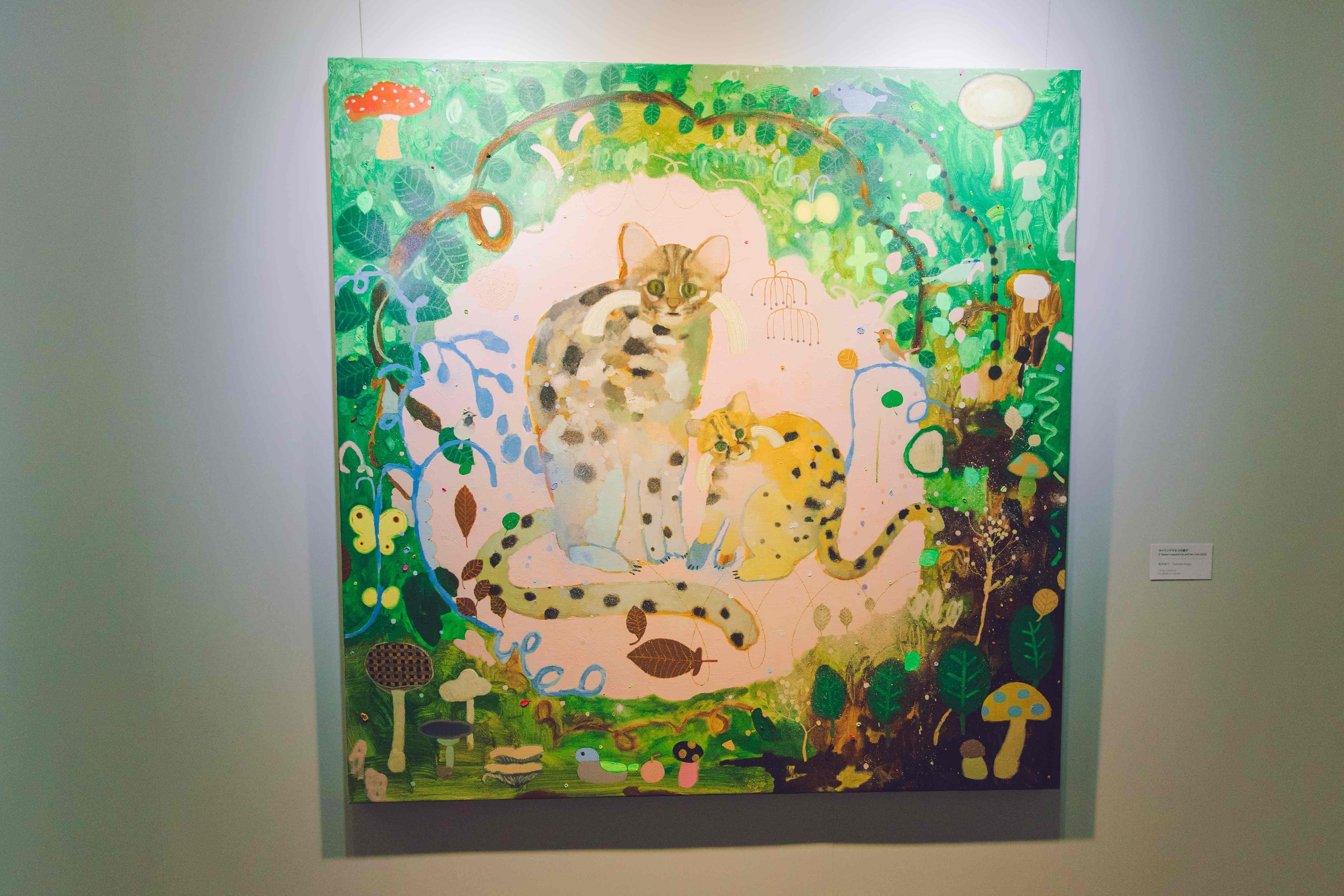 這種安排很重要,因為它讓觀眾先在空間裡建立感受,再回頭理解商品。順序一旦對了,聯名就不會只剩下宣傳感。這次合作裡,長井朋子也另外創作了四幅新作,靈感來自台灣生態與自然意象,畫面融入女孩、台灣藍鵲、鳳梨、石虎與海洋等元素。