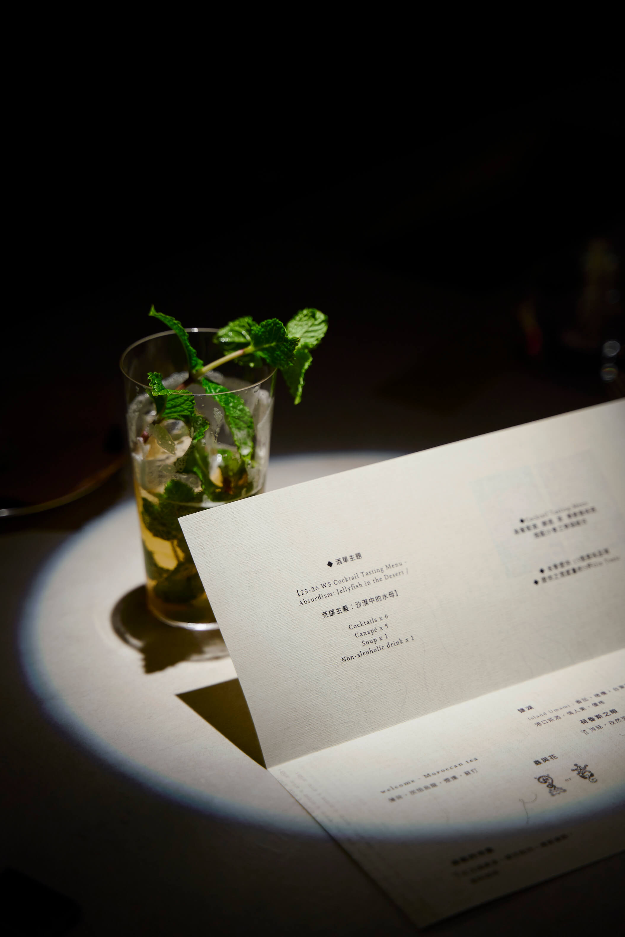 unDer Lab 25–26 WS 冬春季套餐酒單「荒謬主義:沙漠中的水母」,光是這個標題就足夠荒誕,像是某種超現實主義詩人在酒醉後留下的囈語。但當服務人員將第一杯摩洛哥茶遞上,這趟旅程要探討的,或許正是那些看似矛盾卻真實存在的事物:乾涸與流動、堅硬與柔軟、真實與幻象。