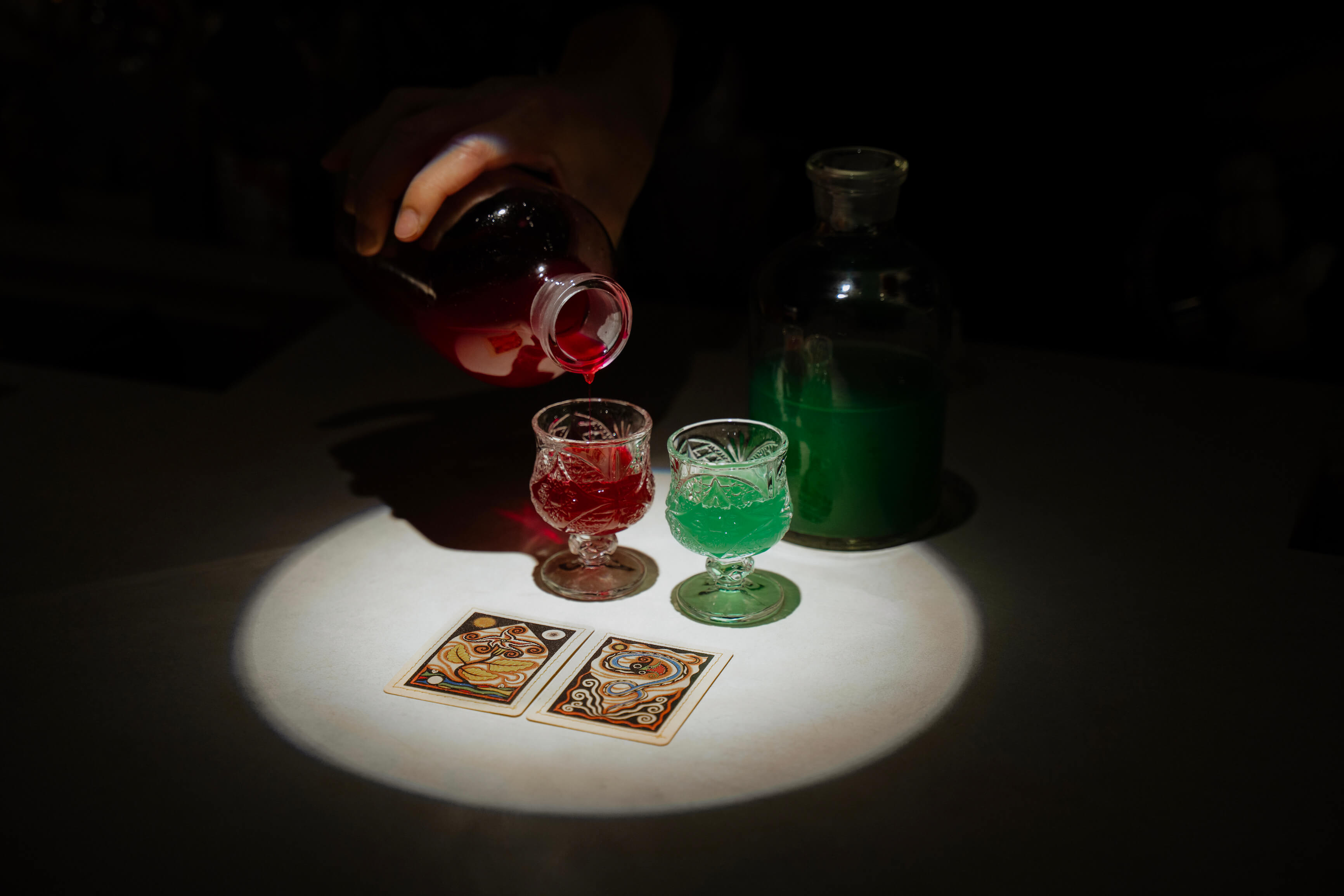 選擇曼陀羅花的那一刻,卡上那朝向光源伸展的姿態、強烈對比的色彩、日月同時並存的意象,喚起某種既危險又迷人的吸引力。曼陀羅花在許多文化中都是通往幻象的入口,是啟動覺醒與轉化的關鍵——它有毒,卻也療癒;它致幻,卻也帶來清明。當對應的酒款被送上桌,才明白這個選擇不只是關於口味,更是關於願意以什麼樣的姿態去面對接下來的未知。
