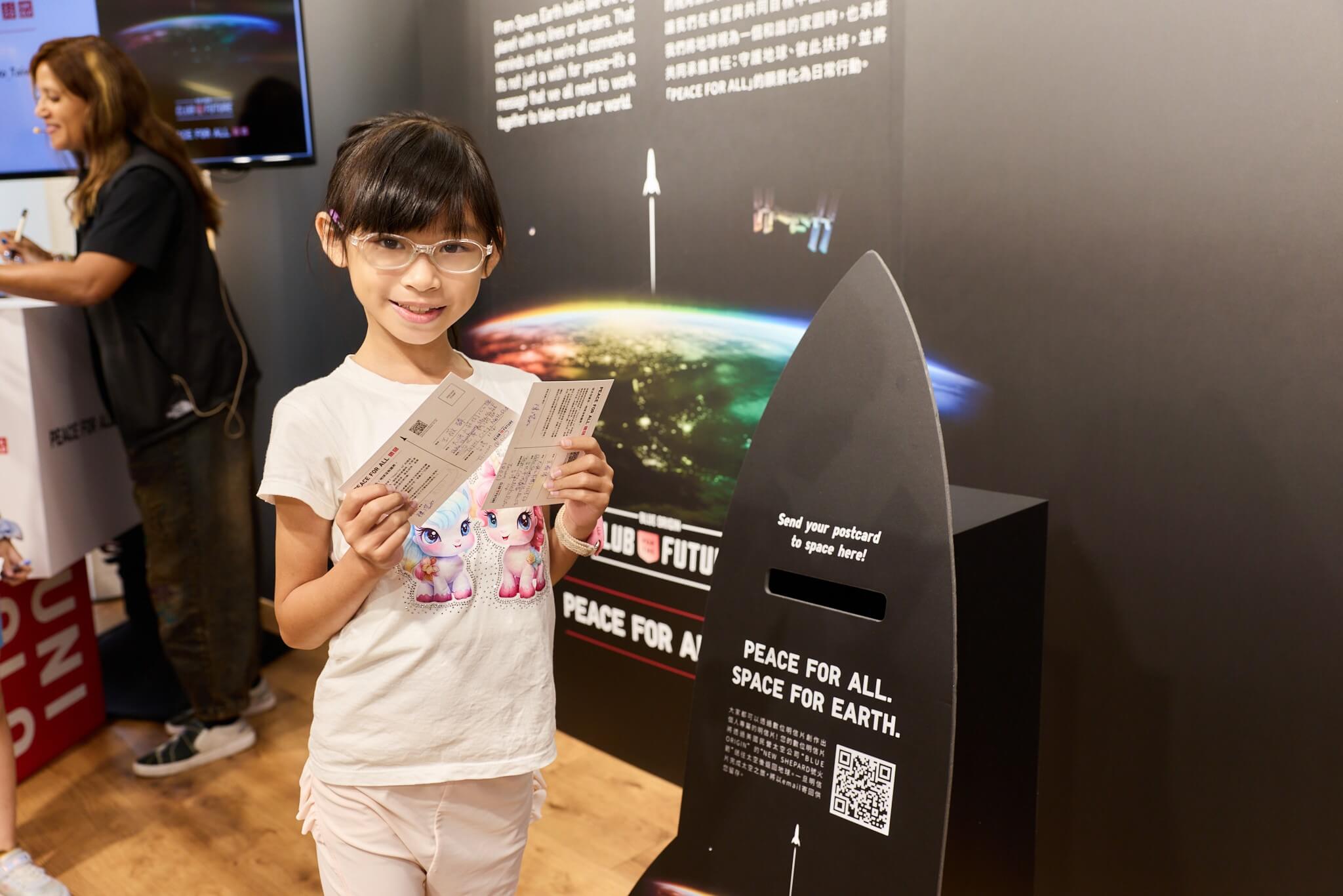 除了互動問答外,UNIQLO 海外行銷暨宣傳戰略部資深經理潘御琳也與Dr. Proctor一同參與「寫信到外太空」太空明信片教育計畫。現場笑聲與驚呼聲此起彼落,孩子們全神貫注,有的描繪浩瀚星河,有的寫下給未來自己的夢想。最後,大家將完成的明信片投入特製的「太空梭郵筒」,期待有朝一日再回到地球,投遞至自己家中的信箱。活動展現UNIQLO持續以服裝串連世界、傳遞和平與永續價值的承諾!