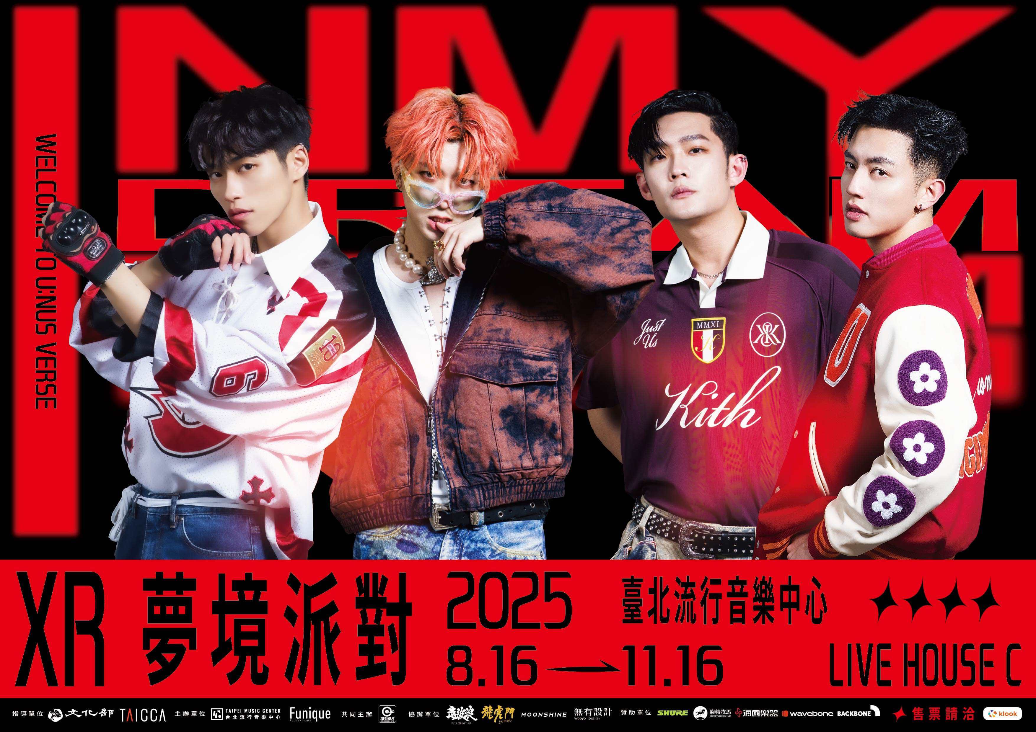 「IN MY DREAM Welcome to U:NUS VERSE-XR夢境派對」沉浸式展覽將於 2025 年 8 月 16 日正式開展至 11 月 16 日,展演地點位於臺北流行音樂中心 Live House C。全場展演以 20 分鐘為一輪體驗,觀眾可加購「虛擬 MV 掌鏡直拍」,化身 U:NUS〈A-TOWN〉攝影師,收藏親自為偶像拍下的帥氣畫面,亦可加購「心動瞬間全身掃描」拍下自己的 3D 立體模型,與 U:NUS 在數位世界中同框,並可加贈獨家限量 3D 隨機實體卡!