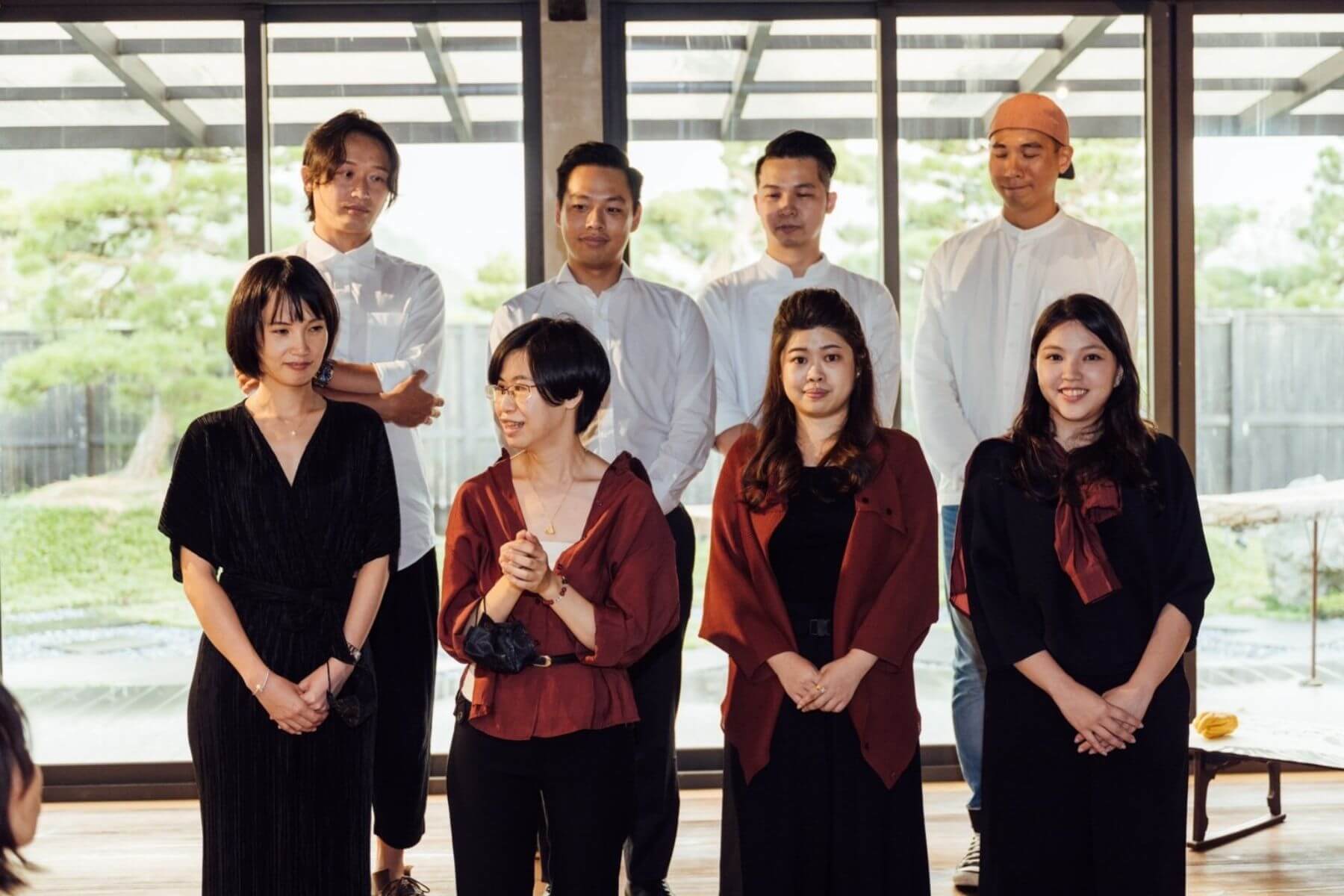 團隊人數漸漸從三人擴張到二十有餘,除了園林師陳元慶、茶人鄭茗謙、策展人鄭雅之之外,還包括職人品水師兼好茶迷創辦人朱宸儀、ASABAN主理人莊子德、樂斐甜點行政主廚戴峻弘、池坊花藝師江謝保、德式花藝師Claire Wu、攝影師Mike Sung、古琴演奏者陳御麟與林峰寬,以及書畫篆刻家蔡長煌等人加入;工作人員同樣精彩,有清酒師、律師、品牌主理人、室內設計師、命理師、專業投資人等各方朋友鼎力相助,眾多互相欣賞的有趣靈魂相聚裏山,彷彿早已等待多時。