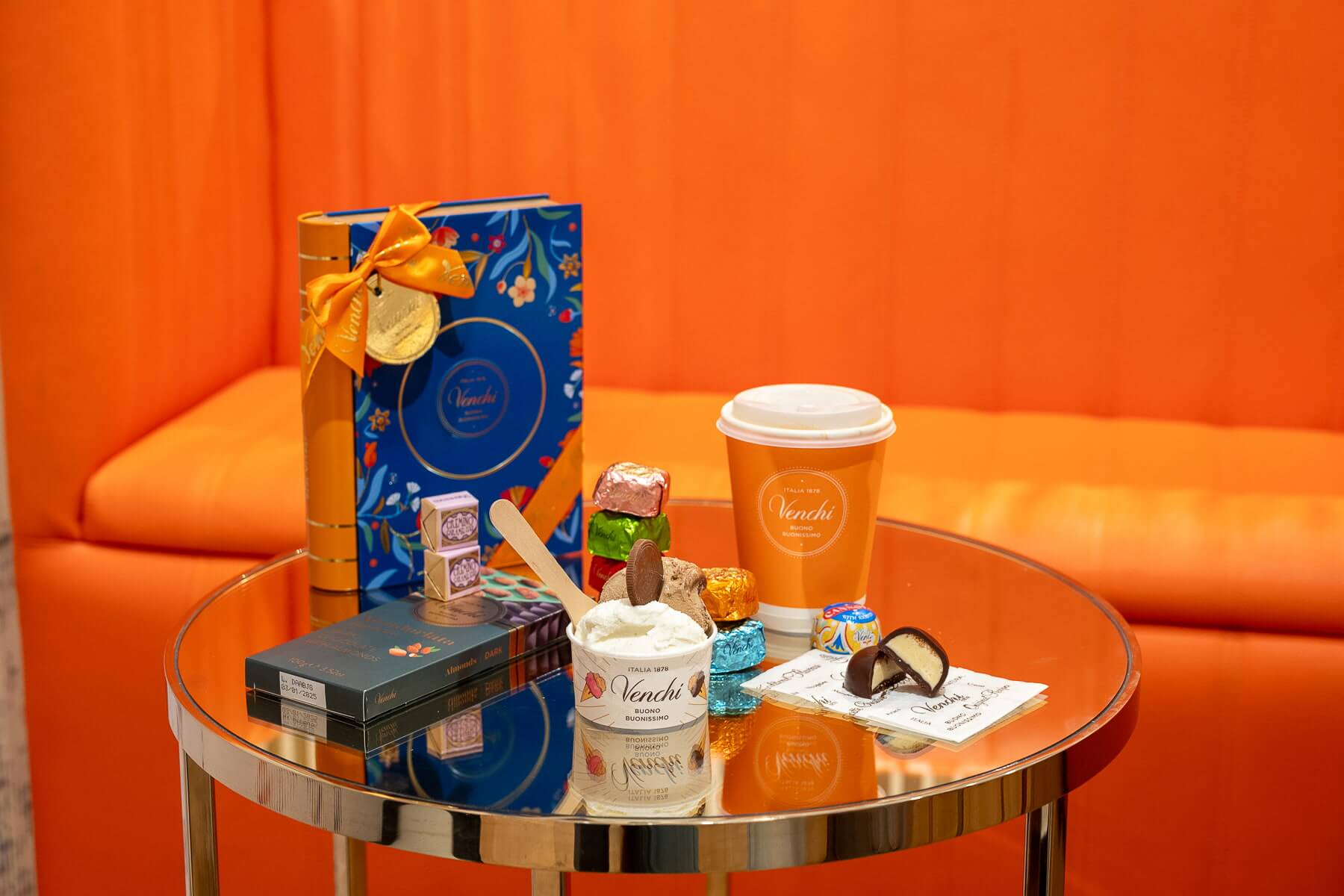Venchi台北永康店獨步全亞洲,甫開幕便搶先開賣Venchi一年一度推出的四款秋季巧克力新配方:「奶油煎餅巧克力」靈感源自西西里奶酪捲,融合奶油乾酪餡料、櫻桃與橘皮蜜餞,搭配鬆脆無麩質的餅乾,外層包裹濃純黑巧克力,層次豐富迷人;「柑橘魚子方巧克力」選用西西里血橙作為內餡,保留橘皮的些許苦澀與75%特濃黑巧克力外殼碰撞出最和諧的平衡;「巧克力碎片魚子方」融合香草可可碎內餡與牛奶巧克力外殼,鬆脆口感如巧克力版的牛奶可可碎片冰淇淋;「黃金焦糖克米諾巧克力」將地中海杏仁醬黑巧克力巧妙夾在焦糖白巧克力之間,打造克米諾經典三層的絲滑口感與香甜滋味