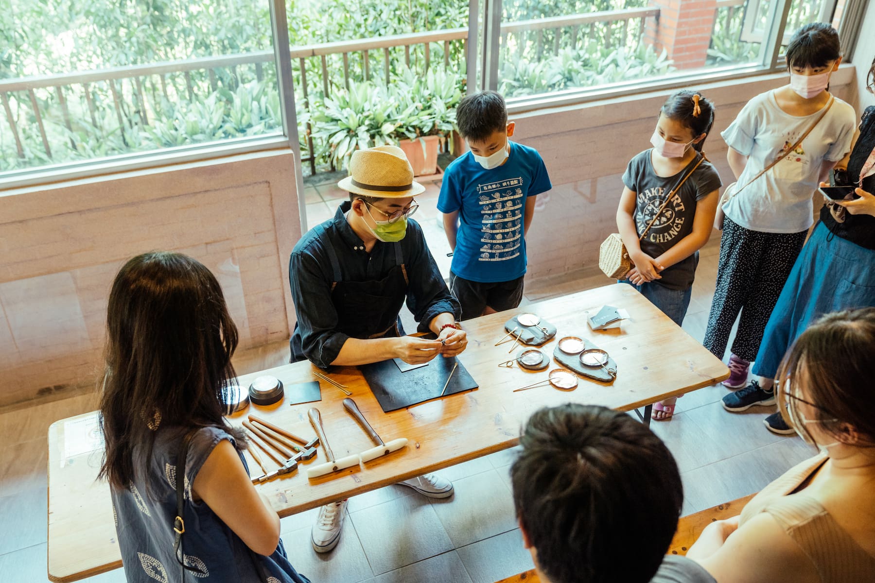無論種茶、製茶,或是工藝活動,背後都是持續不懈的動手做精神,需要耐心、 細心、經驗與毅力,金工課程的廖偉淇老師說道:「不管製茶或工藝,都要透過雙手慢慢形塑。貓空茶文化的復振有各種面向,我能以工藝者的身份,教民眾製作茶具,貢獻專業所學,也是一種參與方式。」