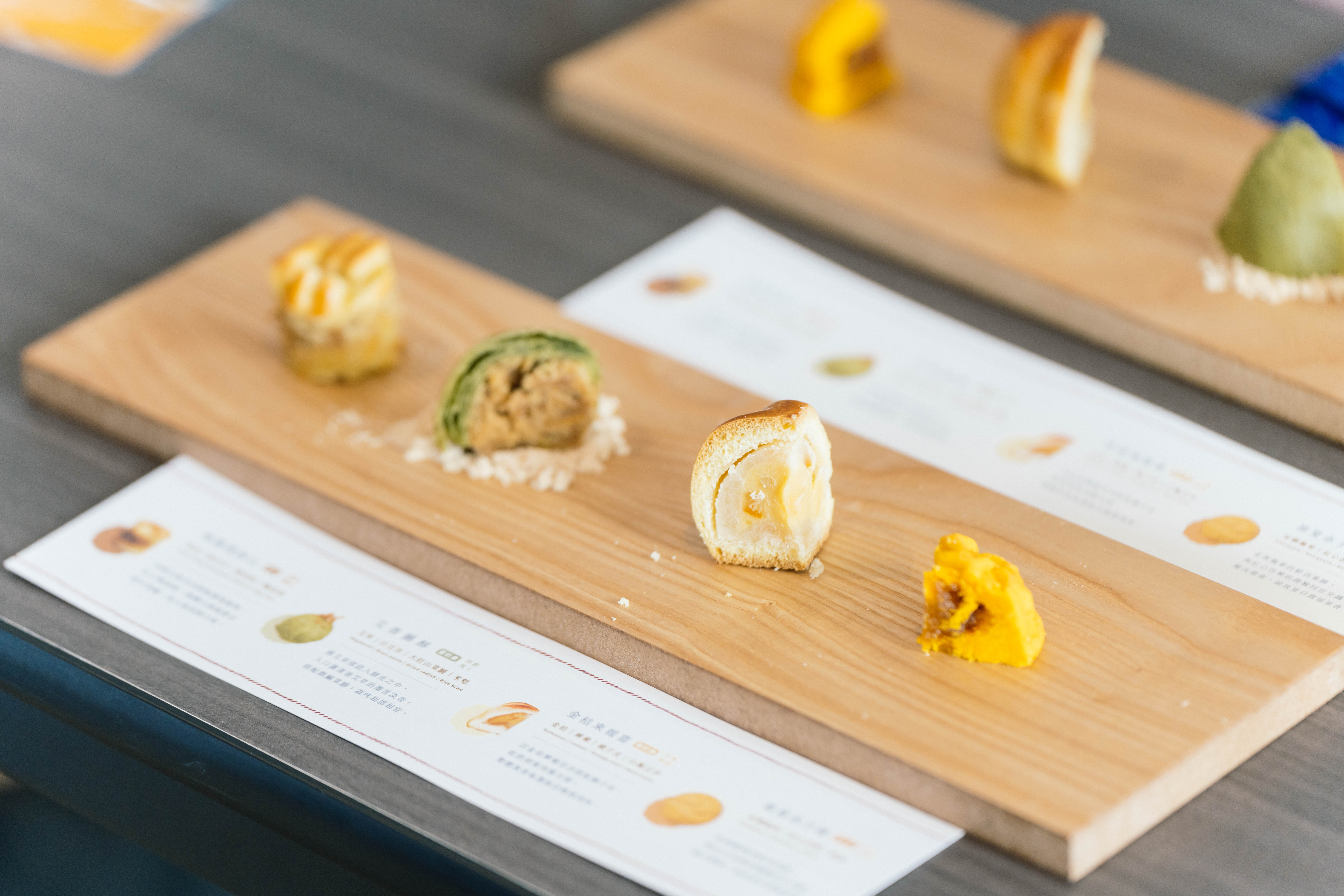 現場參與者品嚐了四款特色漢餅,包括傳統滷肉餅「魯獲我的心」、艾草脯酥、金桔來報喜(融合日式和果子技法與台灣豆沙),以及為慶祝喜豐香40週年特製的「祿夏赤子酥」,這道漢餅點心結合金鑽鳳梨與紅心芭樂,竟然蹦出百香果香氣,令現場驚喜連連,陳建達分享喜豐香通過不同食材的疊加,創造出意想不到的風味層次。