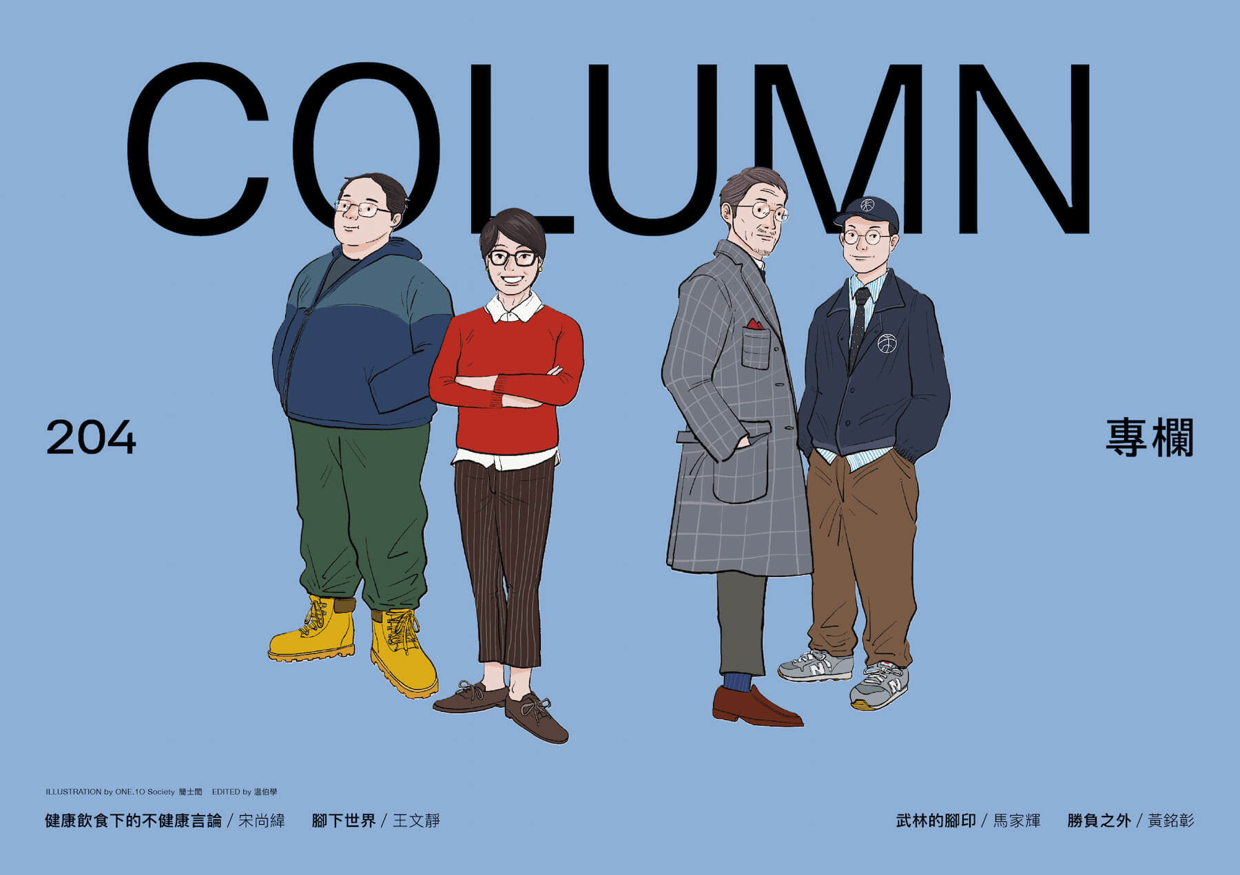 全新陣容的專欄作家,跨世代也跨領域,包括兩位重量級作者:商周集團前執行長王文靜寫她在旅途上看到的台灣與世界,以及香港作家馬家輝寫「武林的腳印」,另有這幾年活躍的詩人宋尚緯寫漫畫文化新現象,和我們前任執行主編黃銘彰寫體育文化。