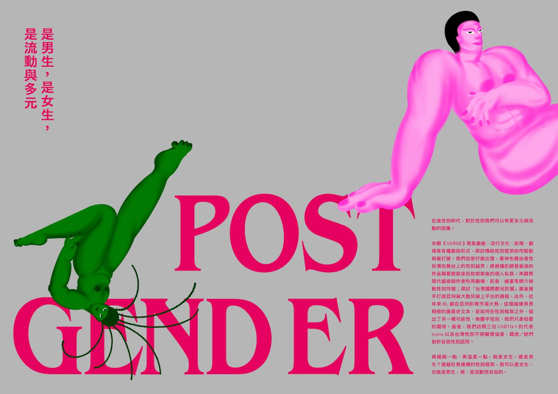 本期封面故事嘗試探討這幾年台灣流行文化與當代藝術中的「性別破框」,探問我們是否正邁向一個後性別時代。