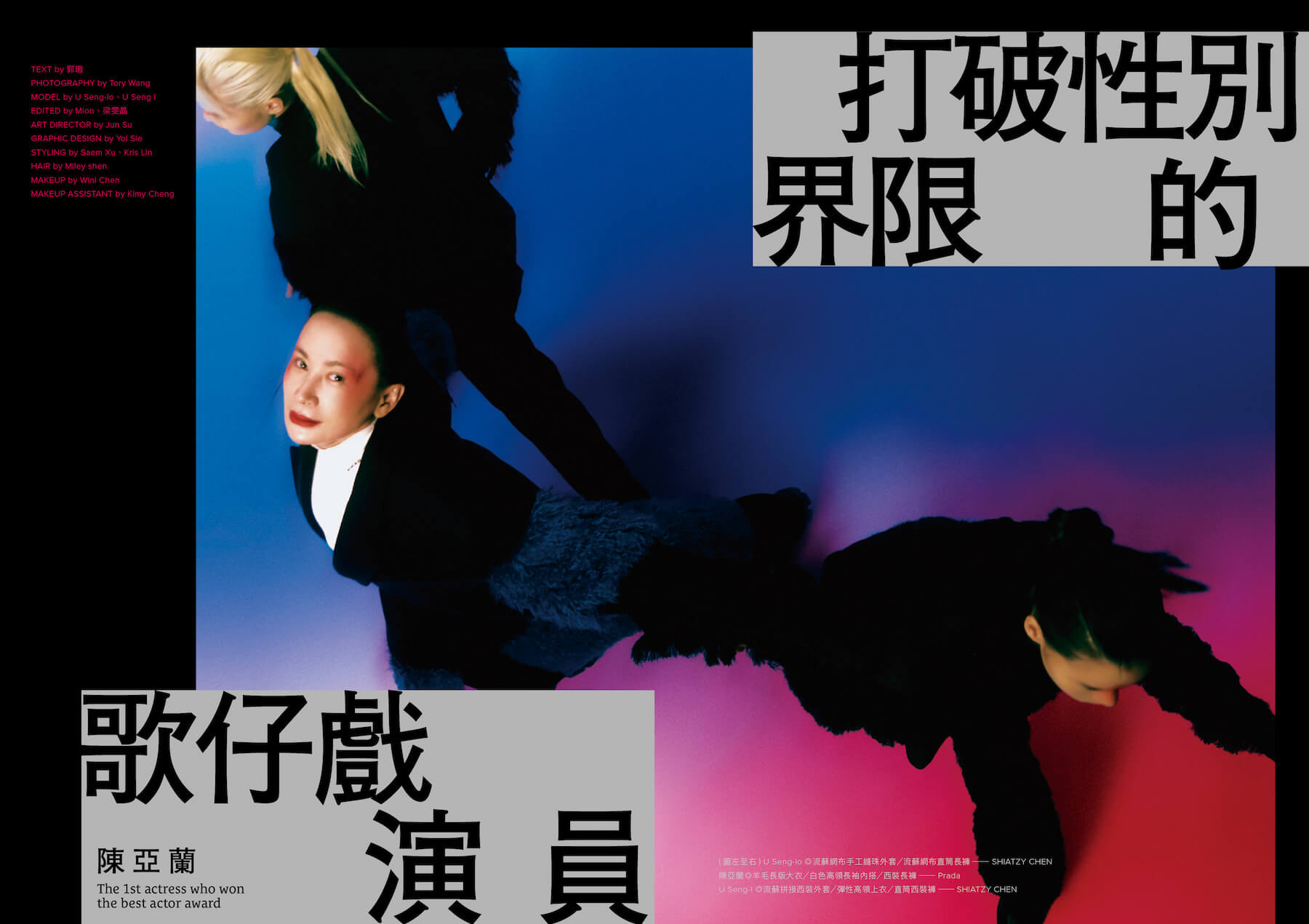 兩個月前知道演員陳亞蘭入圍金鐘獎最佳男主角時,《VERSE》很興奮地邀請她擔任本期的封面人物——沒想到她真的得獎了,成為台灣性別越界的歷史性時刻。訪談陳亞蘭之外,我們也以專文探討為什麼歌仔戲與傳統戲曲都有跨越性別框架的扮演文化。