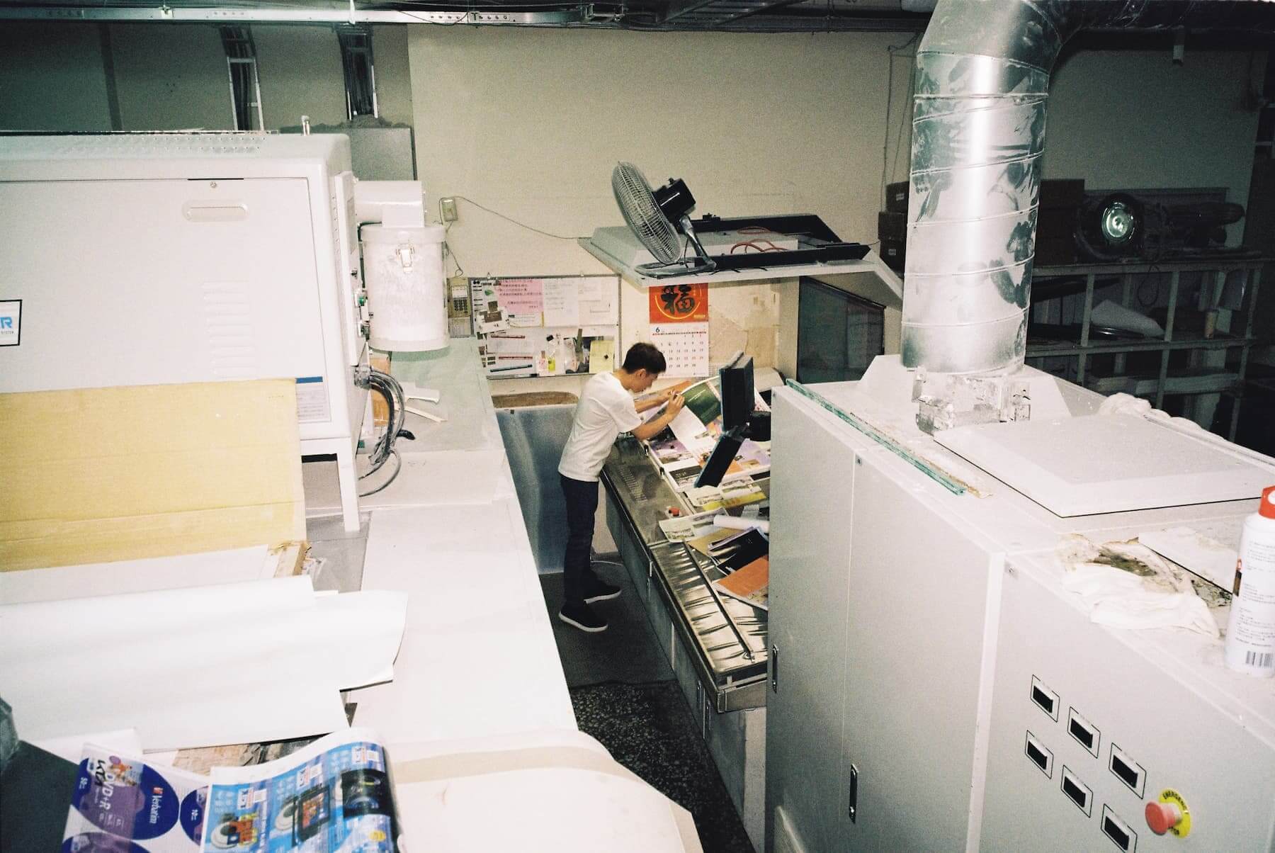 印刷工務小林與他的工作空間。(攝影/周妤)