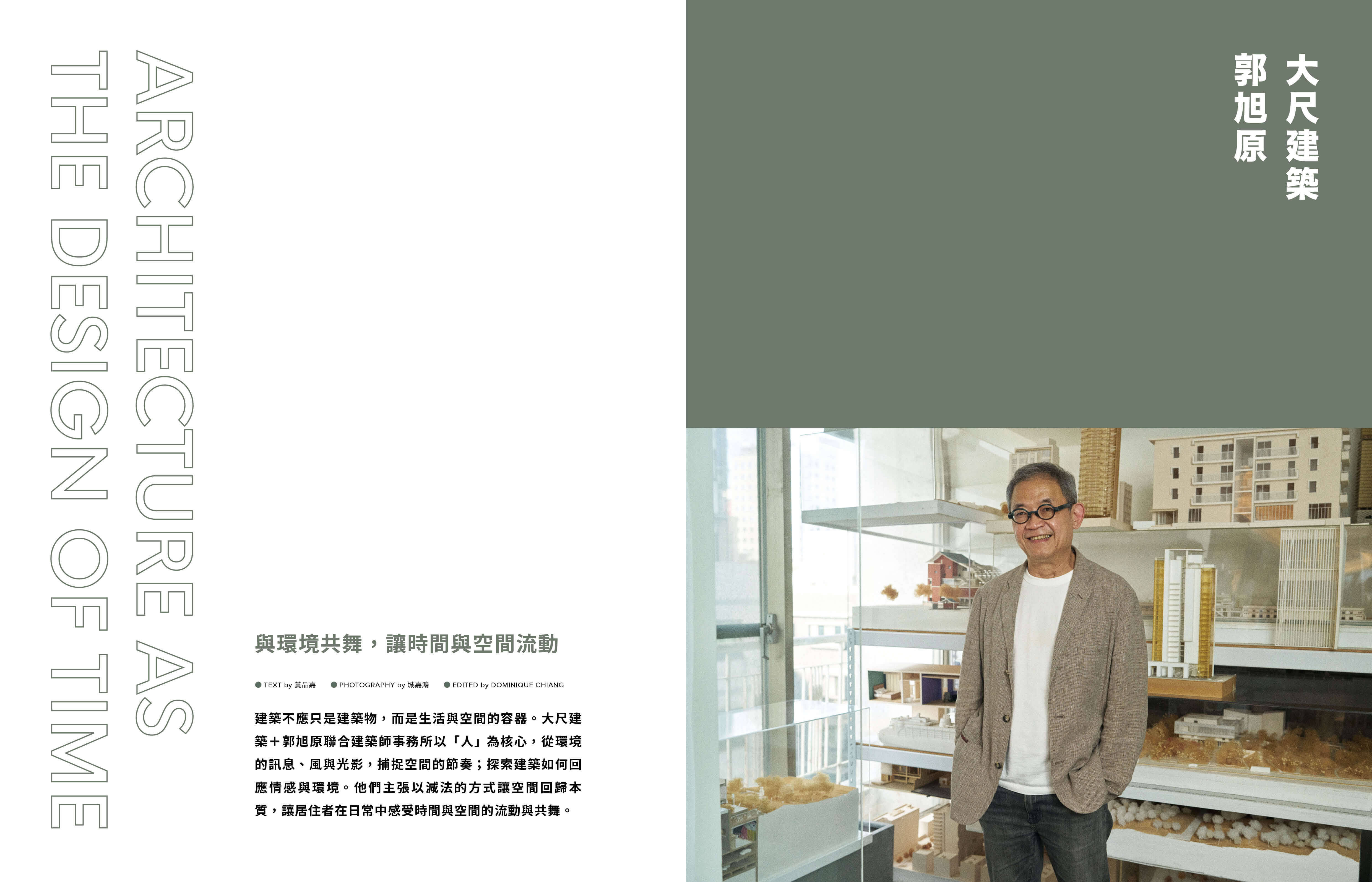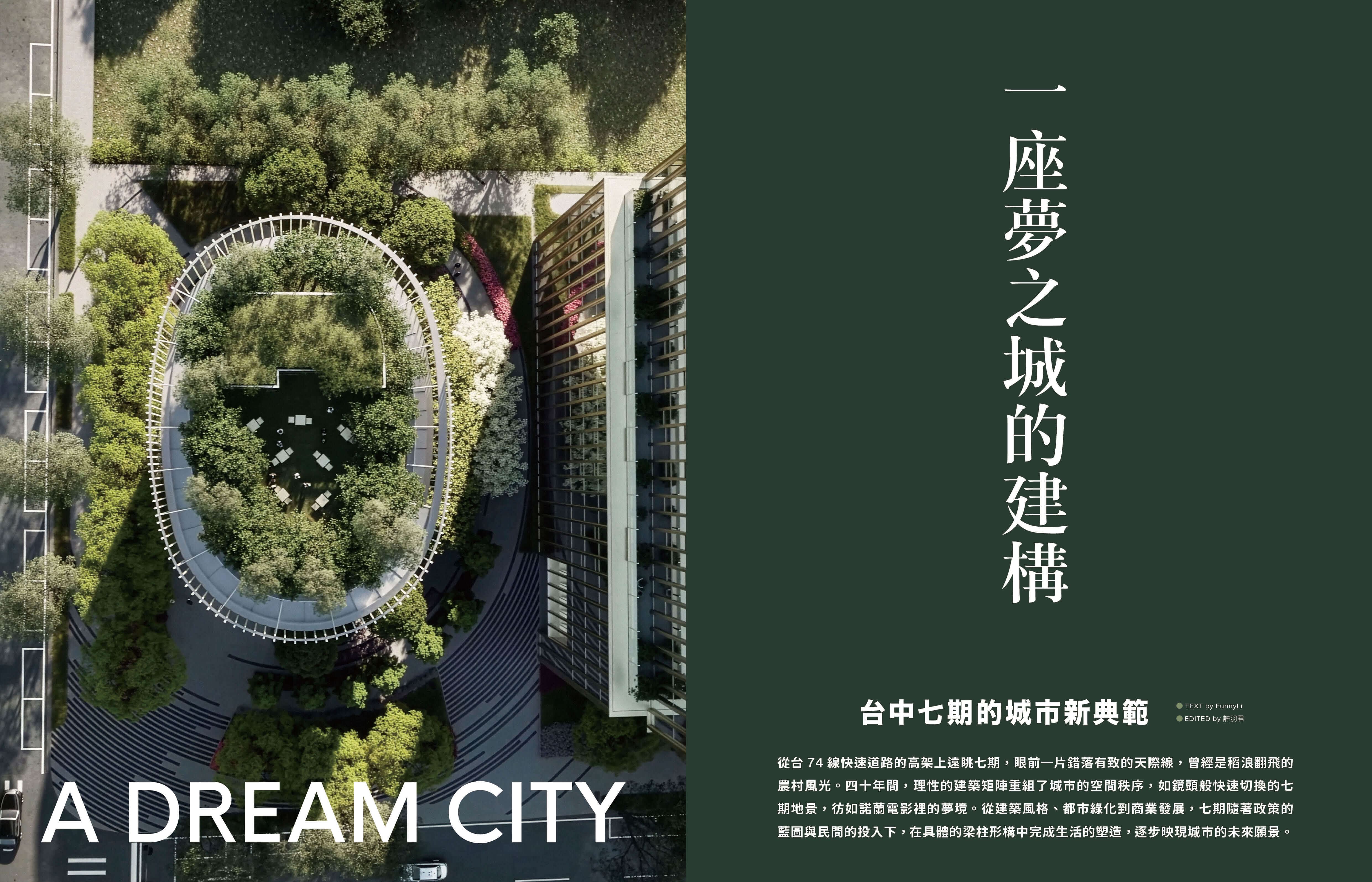 本期專題與長期參與推動台中七期面貌改變的聯聚建設合作,以建築美學為核心,深入探討這座兼具歷史與創新的城市故事,特別是七期這個獨特區域的轉變。我們更深度報導來自義大利的ACPV ARCHITECTS、日本建築大師隈研吾,專訪台灣重要建築師郭旭原、燈光設計大師姚仁恭,以及室內設計師關傳雍,從建築、光影到室內細節規劃,也透過企業創辦人江董事長與新世代關鍵人物的分享,探討一棟建築如何在不同專業的協作下成形,並且如何改變一座城市的面貌與精神。