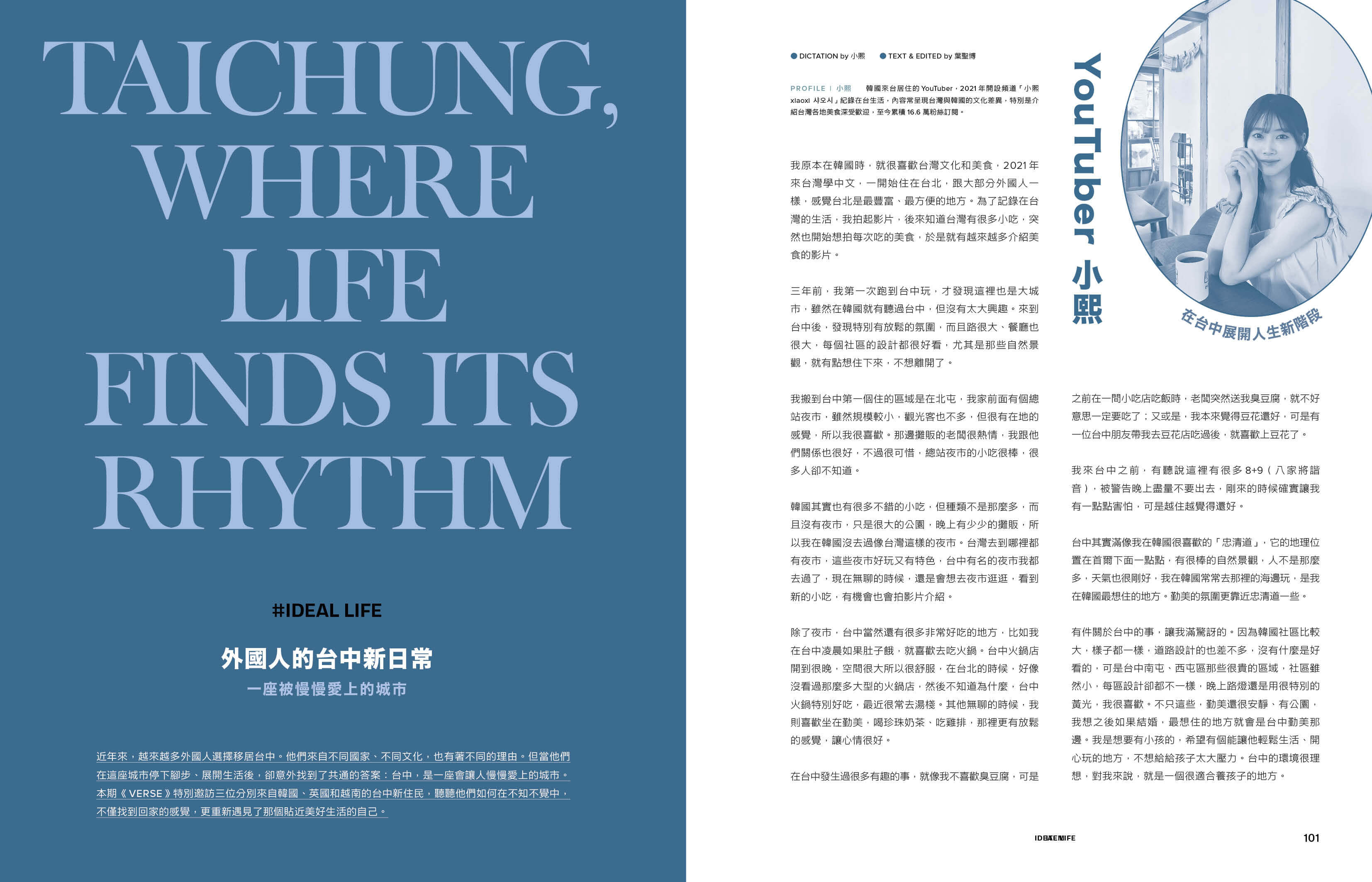除了封面故事的建築專題,整期內容亦可視為一本「台中專題」。我們專訪三位現居台中的外國人,無論來自英國、越南或韓國,他們都在這座城市中發現不同於既有想像的宜居魅力,從街區、自然到日常飲食,甚至比許多在地人更細緻地感受這座城市的節奏。