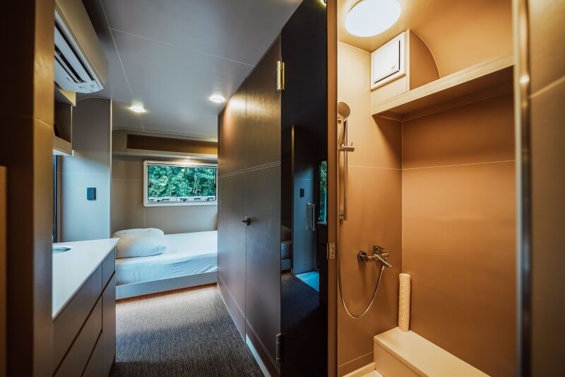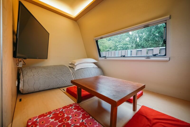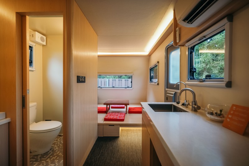 露營車有和洋二式,最多可入住4人,車內生活所需設備一應俱全,車外設有桌椅及營帳,可在這裡與親友一同享用豐盛的冬日暖心火鍋。